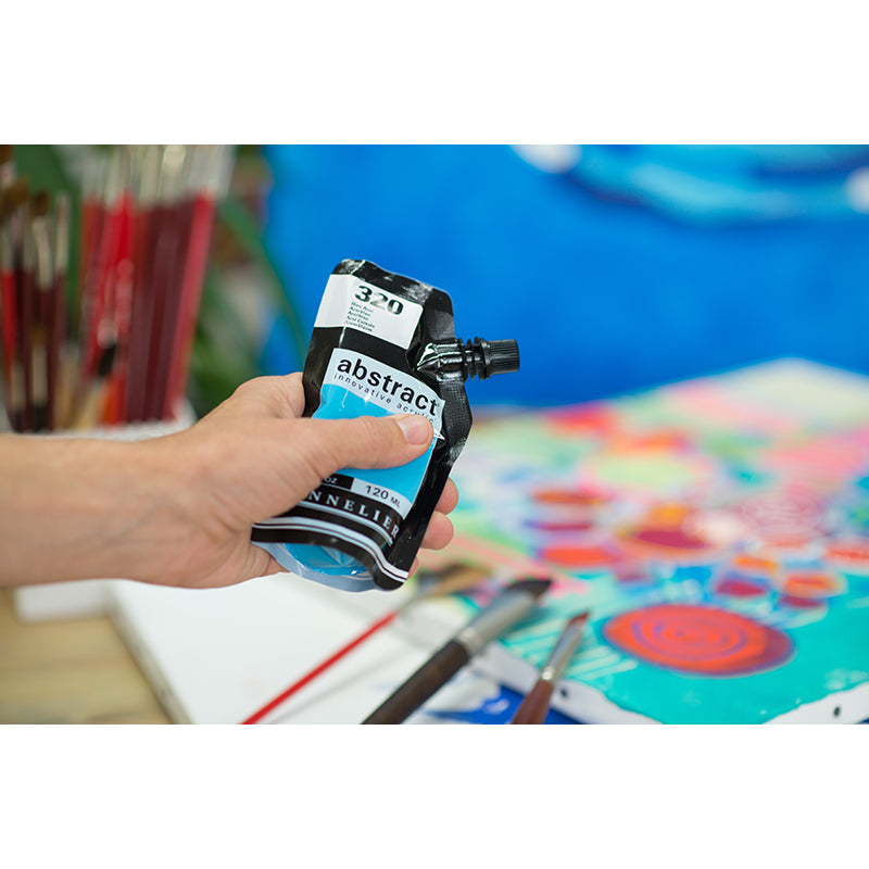 Sennelier Abstract is a high-quality fine acrylic paint made in France, packaged in a flexible pouch.The flexible air air-tight pouches can be firmly resealed with the nozzle, which means paint stays wet, workable, and all of it can be used.