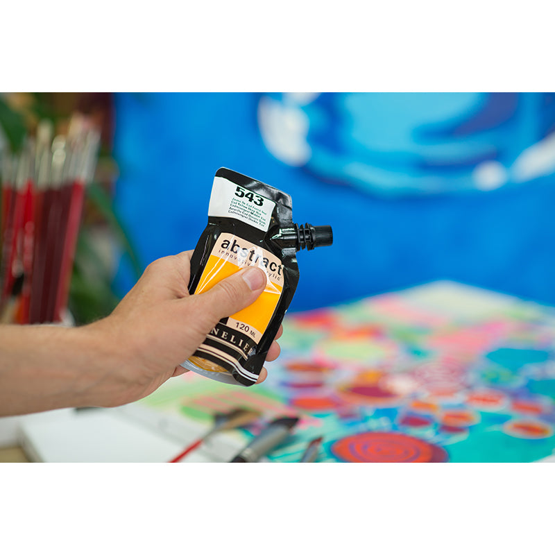 Sennelier Abstract is a high-quality fine acrylic paint made in France, packaged in a flexible pouch.The flexible air air-tight pouches can be firmly resealed with the nozzle, which means paint stays wet, workable, and all of it can be used.