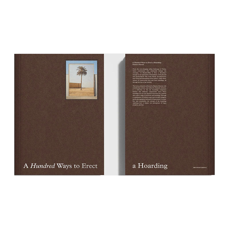 From the ever-changing urban landscape of Dubai, where construction sites continually reshape the cityscape, "A Hundred Ways to Erect a Hoarding" emerges as an exploration of boundaries, both physical and psychological. This book blends documentation and visual experimentation of the author's daily observations of construction sites and their hoardings, all through the lens of an outsider.