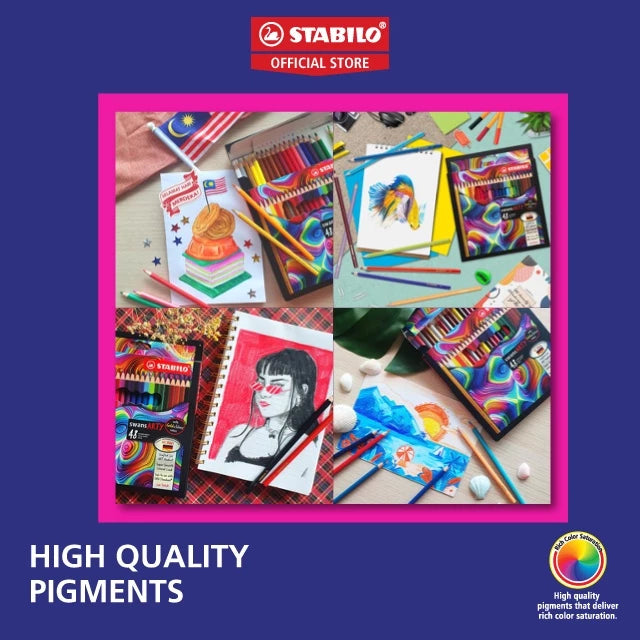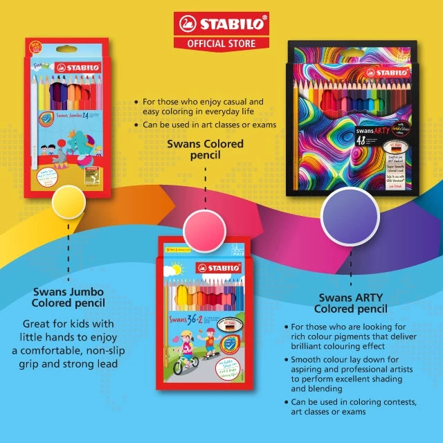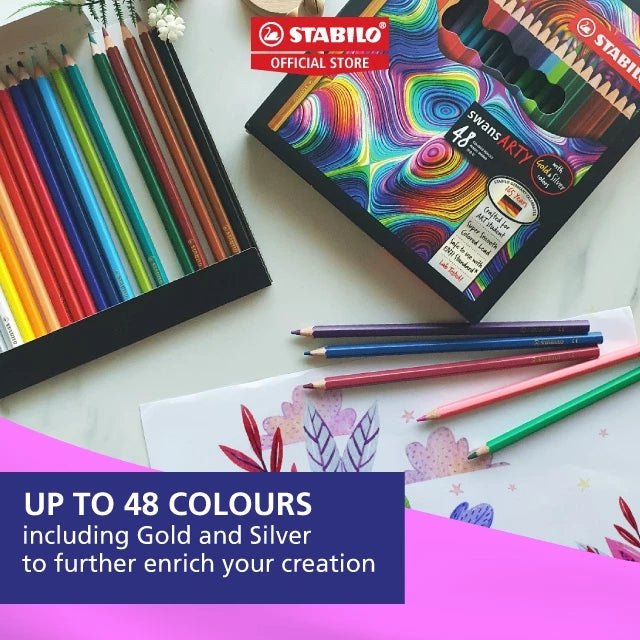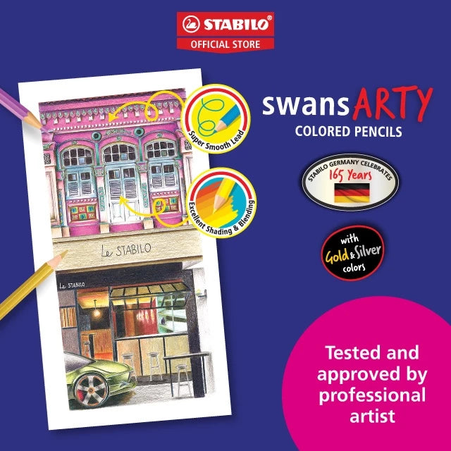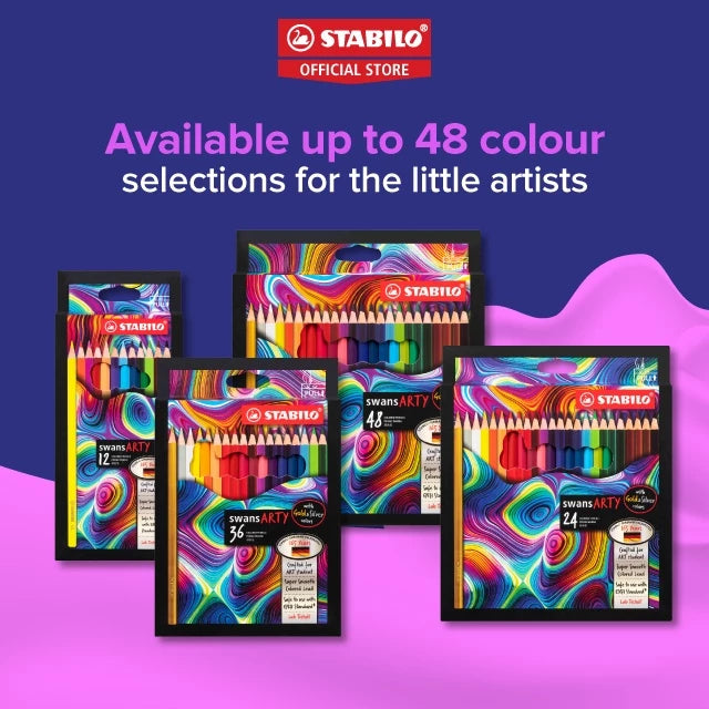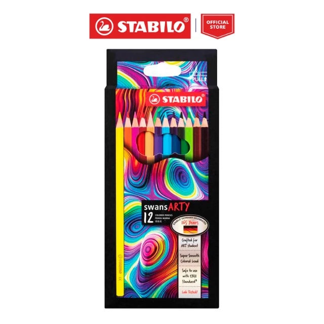 The STABILO Swans ARTY Colored Pencils are a delightful set of colored pencils designed for artists of all ages and skill levels. Known for their vibrant colors and smooth laydown, these pencils offer excellent blendability and layering capabilities, allowing artists to create rich and dynamic artworks. The STABILO Swans ARTY Colored Pencils feature a sturdy hexagonal barrel for comfortable grip and precise control, making them perfect for detailed illustrations, coloring books, and artistic projects. With a wide range of colors available, artists can unleash their creativity and bring their imaginations to life with these high-quality colored pencils.
