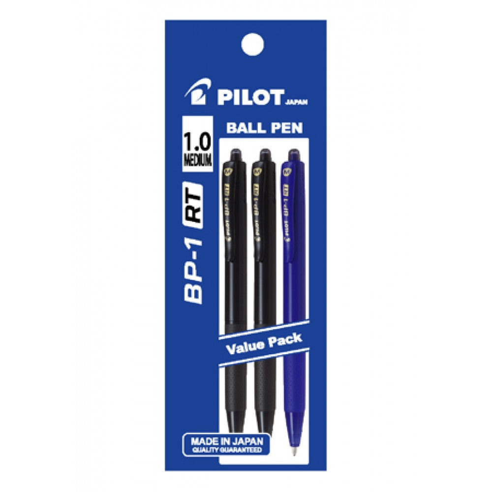 PILOT Ball Pen-1RT Medium Black2 Blue1/OPP