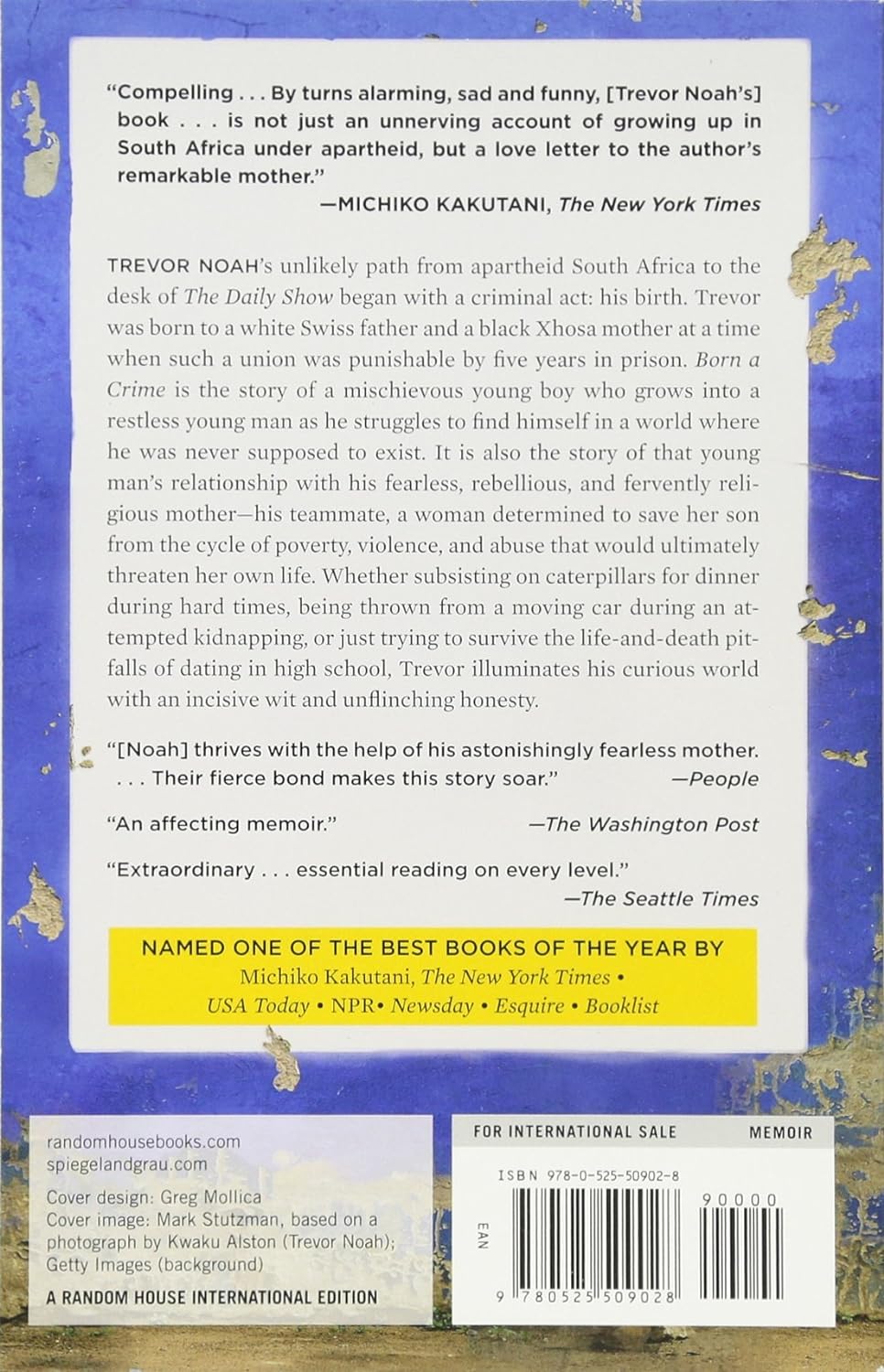 Born a Crime tells the story of a mischievous young boy growing into a restless young man as he struggles to find his place in a world where he was never supposed to exist. Born a Crime is equally the story of that young man's fearless, rebellious and fervently religious mother - a woman determined to save her son from the cycle of poverty, violence and abuse that ultimately threatens her own life.