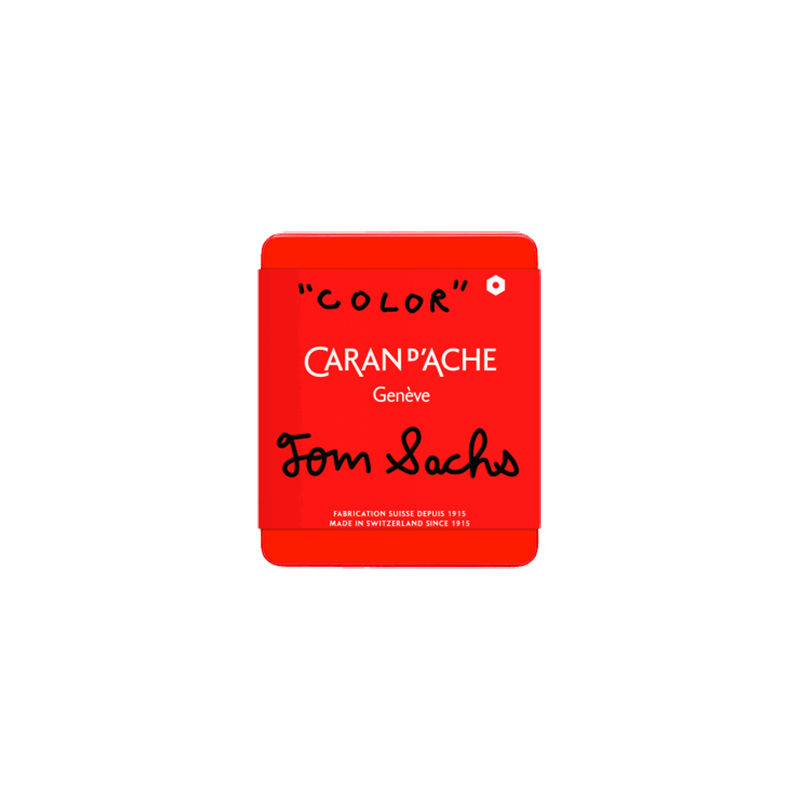 To accompany this exhibition, the artist has designed an exclusive colour chart of 10 Neocolor II Aquarelle pastels, directly inspired by “COLOR”, the comprehensive colour code for Tom Sachs Studio. This unique assortment is nestled in the iconic red metal box, specially reimagined for the occasion and presented with a matching sleeve.