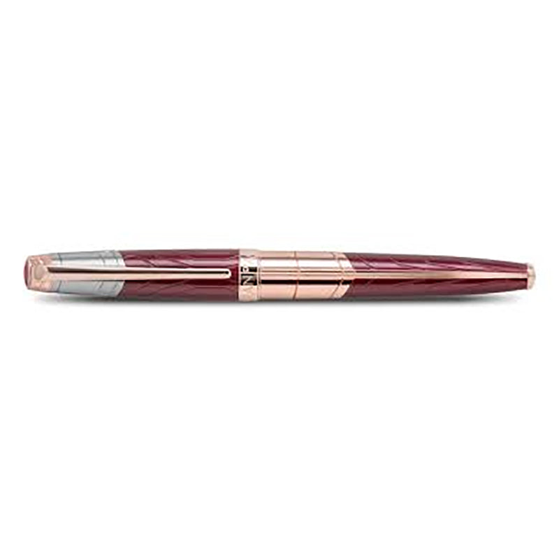 Fabulous limited edition Justice League Wonder Woman roller pen. Design of the barrel is inspired by Wonder Woman's costume. Features rich burgundy lacquer with accents in plated silver and rose gold. Uses a rollerball ink cartridge. Fine Swiss craftsmanship combines with fantasy