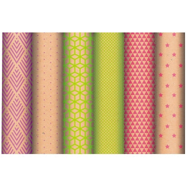 Trendy & authentic. Used for packaging, sketching, protection of work surfaces or exhibitions... Nowadays, kraft paper has been turned into a trendy paper printed with colourful patterns for a very natural look. 100% recycled paper!