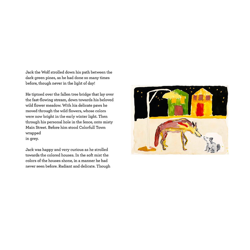 Jack the Wolf lives in a beautiful cave on a short mountain, near Colorfull Town. Jack is a happy and benevolent wolf, with only one weakness: CHOCOLATE. Follow Jack the Wolf through the pages of this beautifully illustrated book by world-renowned artist Sean Scully and his son Oisin Scully, to discover the trouble Jack causes to the children of Colorfull Town in his nightly hunts for chocolate dinners, and how his new friend Rebecca the Rabbit helps him restore happiness to the sad children of the town.
