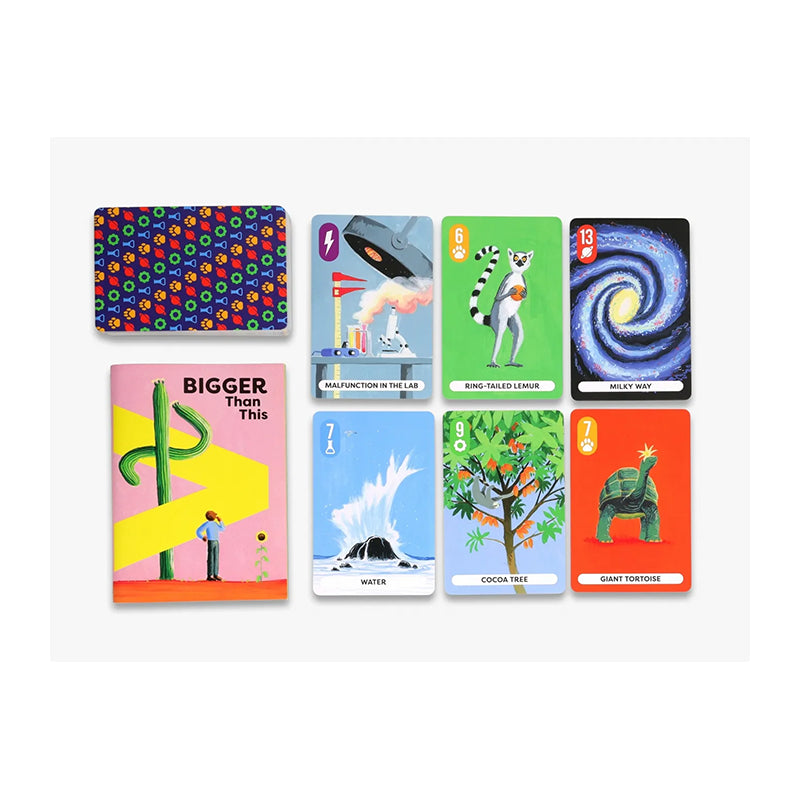 In Bigger Than This, the four suits have been replaced by four different fields of science – chemistry, zoology, botany and astronomy. Collect cards by asking your opponents for cards that are either bigger than or smaller than one of the science elements in your hand. If your opponent can’t satisfy your request, you’ll win the round. Keep an eye out for the eight wildcards that will cause a malfunction in the lab – they really throw a spanner in the works! Book Details Format: Index Cards Size: 14.4 x 10.8 cm Extent: 116 pp Publication Date: 28/11/24 ISBN: 9780500421109