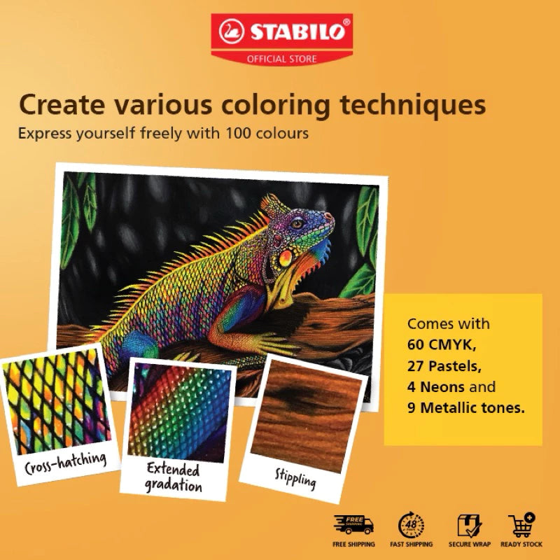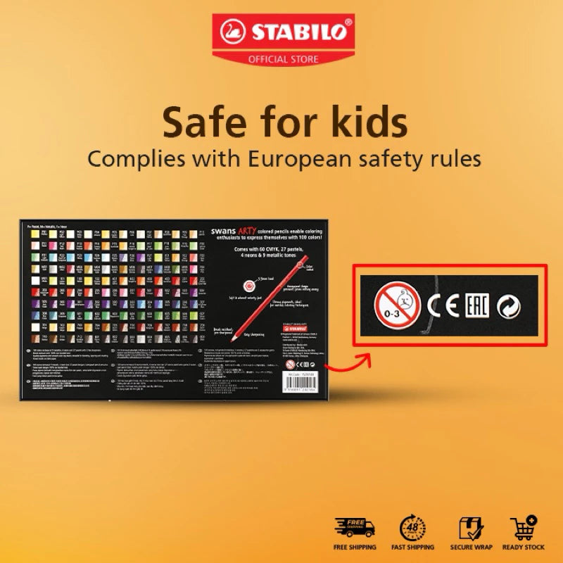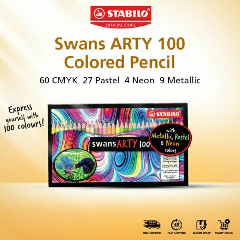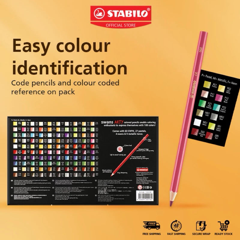 STABILO swans ARTY Colored Pencil 100 Colours with CYMK, Pastel, Metallic & Neon in Hard Cover Box