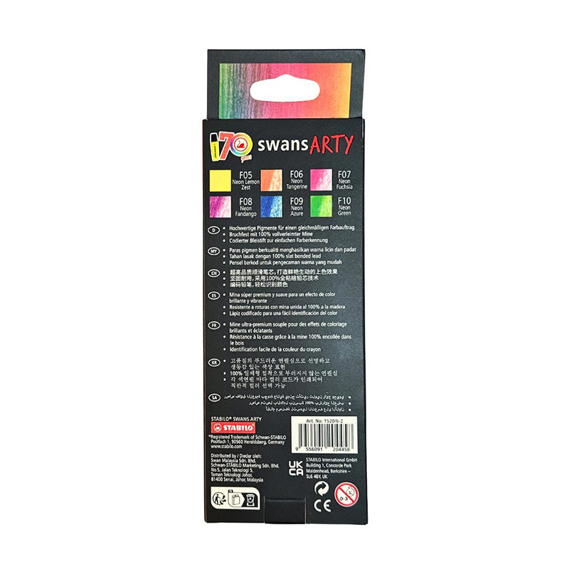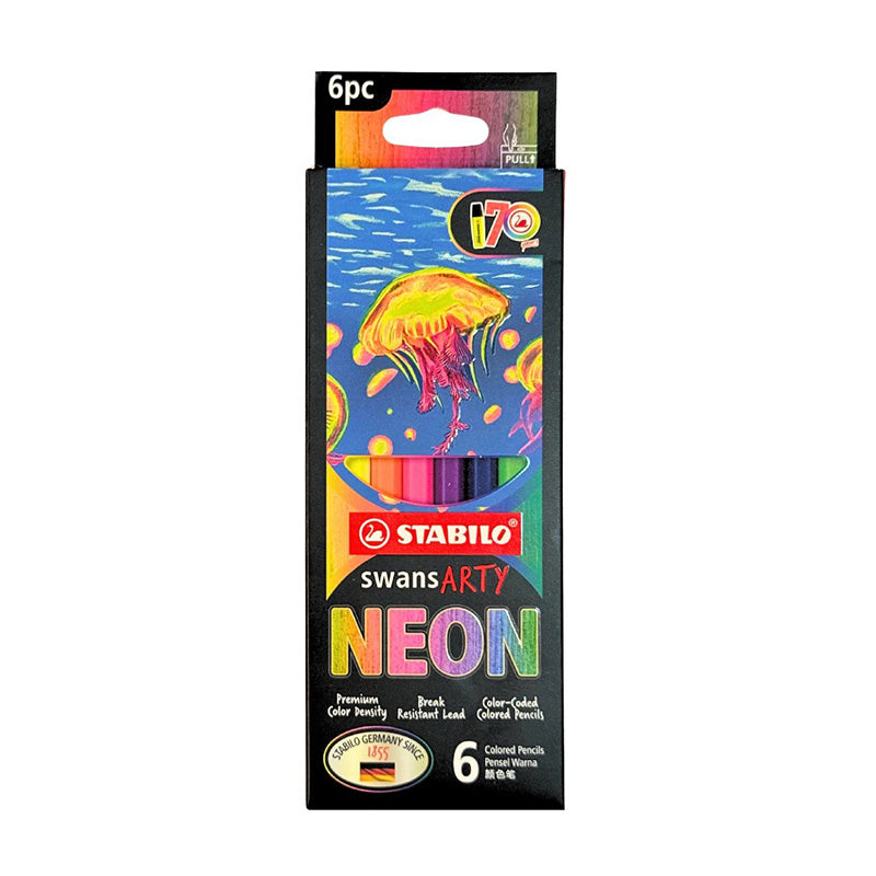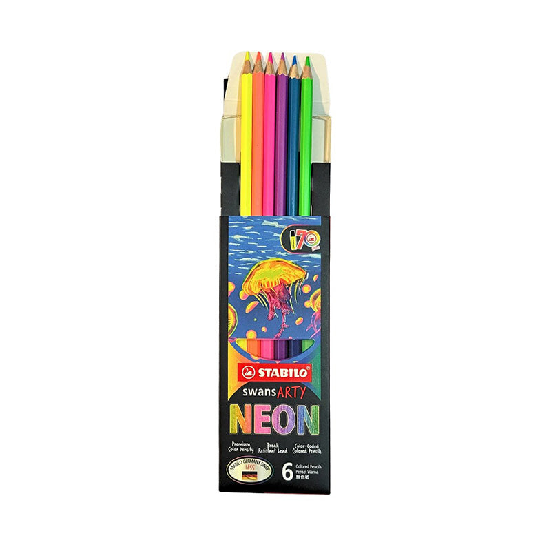 The STABILO Swans ARTY Neon Colour Pencil 6s is a set of artist-grade coloured pencils featuring six neon colours. Part of the STABILO ARTY range, these pencils are designed for vibrant and colourful creative effects.