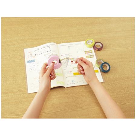 Karu-Cut's specially processed blade has raised and recessed parts of the blade that are fully sharpened. By cutting rather than ripping tapes, 50 percent less force is needed to cut tape (compared to conventional tape cutters made by KOKUYO). With conventional tape cutters, the serrate edge of a cut piece of tape corresponds precisely to the blade of the product. With the blade attached to Karu-Cut tape cutters that it meets the tape at a perpendicular angle, the edge of a cut piece of tape is straight, which in turn means that the tape is less likely to be split when peeling off. Regardless of the type of tape in use, it only takes a light touch to cut a piece off. Karu-Cut offers great value since you can cut different kinds of tape with just this one item!