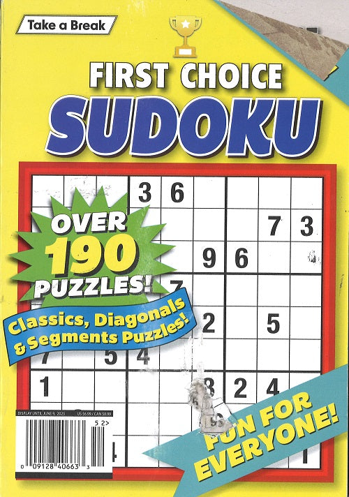 First Choice Sudoku Magazine is the go-to publication for Sudoku enthusiasts of all skill levels. Packed with a wide range of puzzles—from easy to expert—this magazine provides hours of brain-stimulating fun. Whether you're a beginner looking to sharpen your skills or a seasoned puzzler seeking a challenge, First Choice Sudoku has something for everyone. Each issue features expertly crafted puzzles, tips and tricks to improve your solving strategy, and exclusive features to help you master the art of Sudoku. Plus, enjoy bonus sections with variations like Killer Sudoku and Samurai Sudoku to keep your mind engaged and entertained. With First Choice Sudoku Magazine, every issue is a step closer to becoming a Sudoku master!