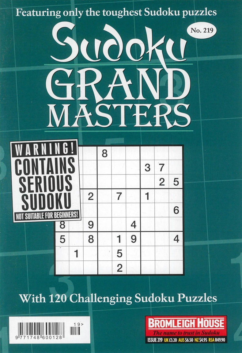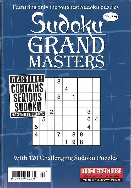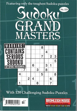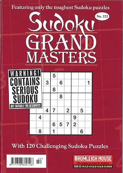 For the true sudoku devotee there can be no other magazine. Sudoku Grand Masters is designed for the real expert and each issue starts at the intermediate level progressing to the devilishly difficult Expert Level 2. Grand Masters is sudoku in its purest form and features only 9x9 grids.