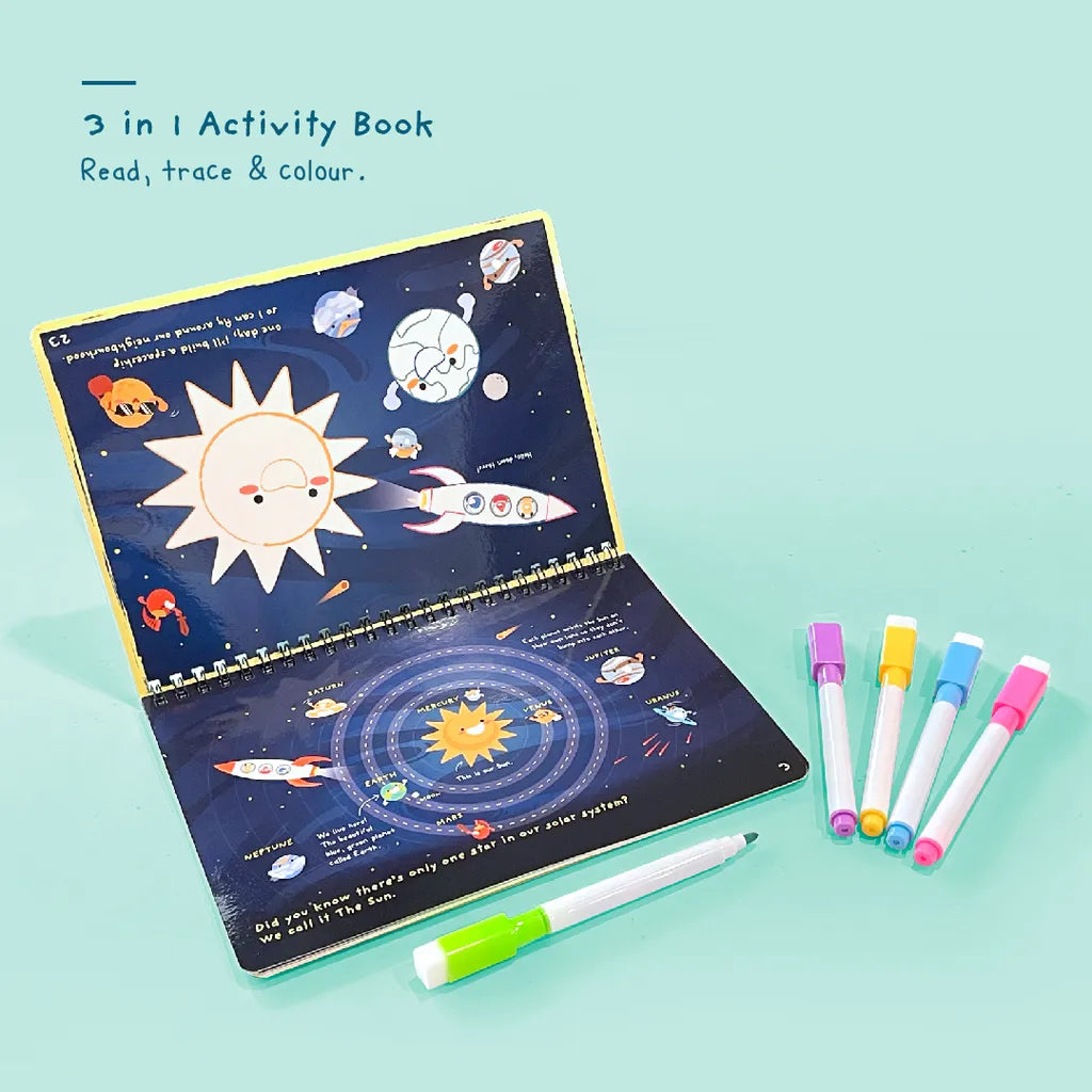 My World – A Curious & Mysterious Place is our latest in our Story & Activity Book range. This 3 in 1 wipe-clean book introduces your child to our curious and mysterious world. The tracing and colouring activities are designed for young children who are developing their pre-writing skills.