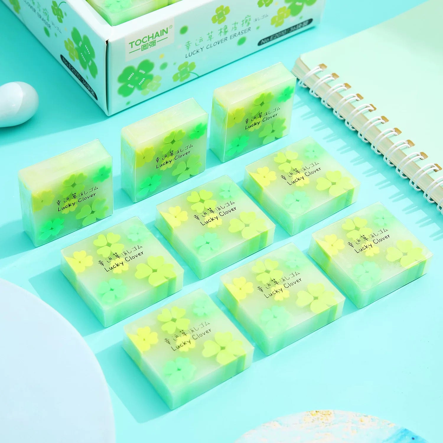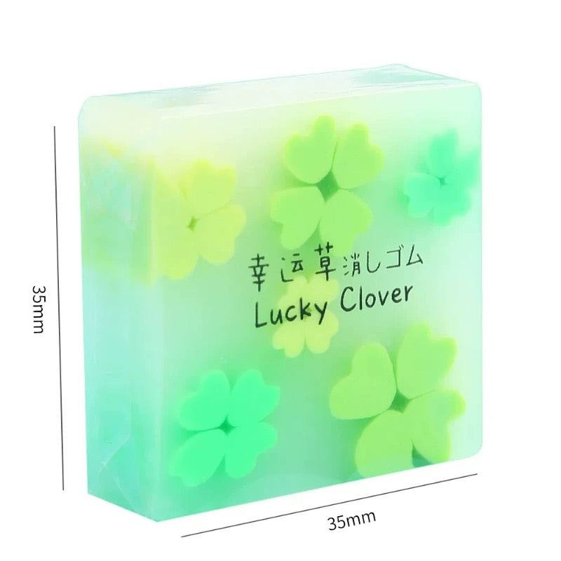 A charming twist on an everyday essential. This translucent eraser is adorned with a delicate lucky clover design, adding a touch of positivity to your stationery collection. Smooth to the touch and gentle on paper, it erases cleanly without smudging or tearing. Compact and lightweight, it slips easily into your pencil case—ready to bring a bit of luck to your writing and drawing.