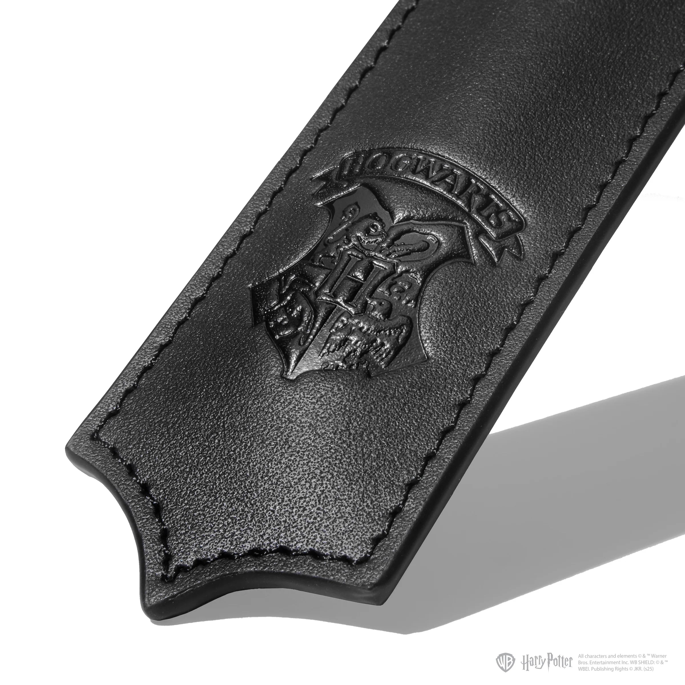 Intricately etched brass grips capturing each House’s mascot and relic.