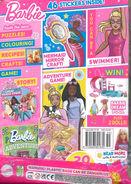 Barbie magazine lets you enter a world of fun and imagination with Barbie and her friends. Every issue is packed with fun, they contain comics, crafts, puzzles, and facts. Each issue also comes with a Barbie gift and sticker sheet.