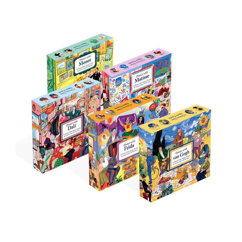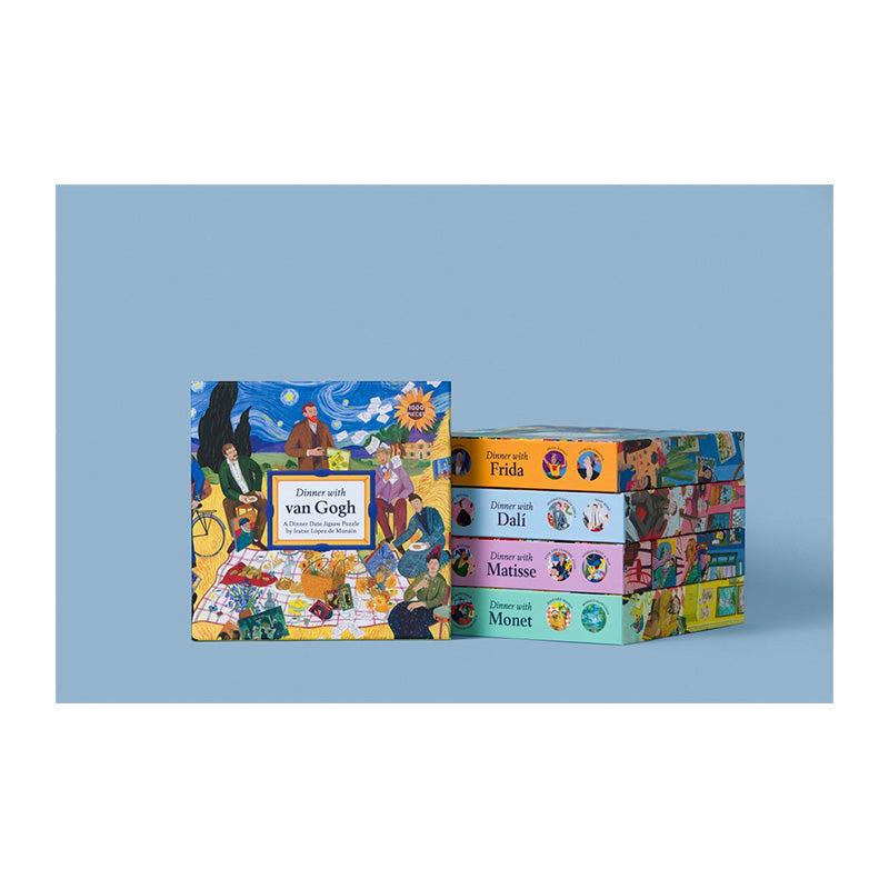 The Dinner Date Jigsaw Puzzle series is an opportunity to immerse yourself in the world of history's most famous artists. It is a high-quality, luxury puzzle series. Each puzzle piece is backed with white board, ensuring the puzzle doesn't fray but is still compatible with puzzle glue.Also available: Dinner with Monet, Dinner with Dali, Dinner with Matisse and Dinner with Frida.