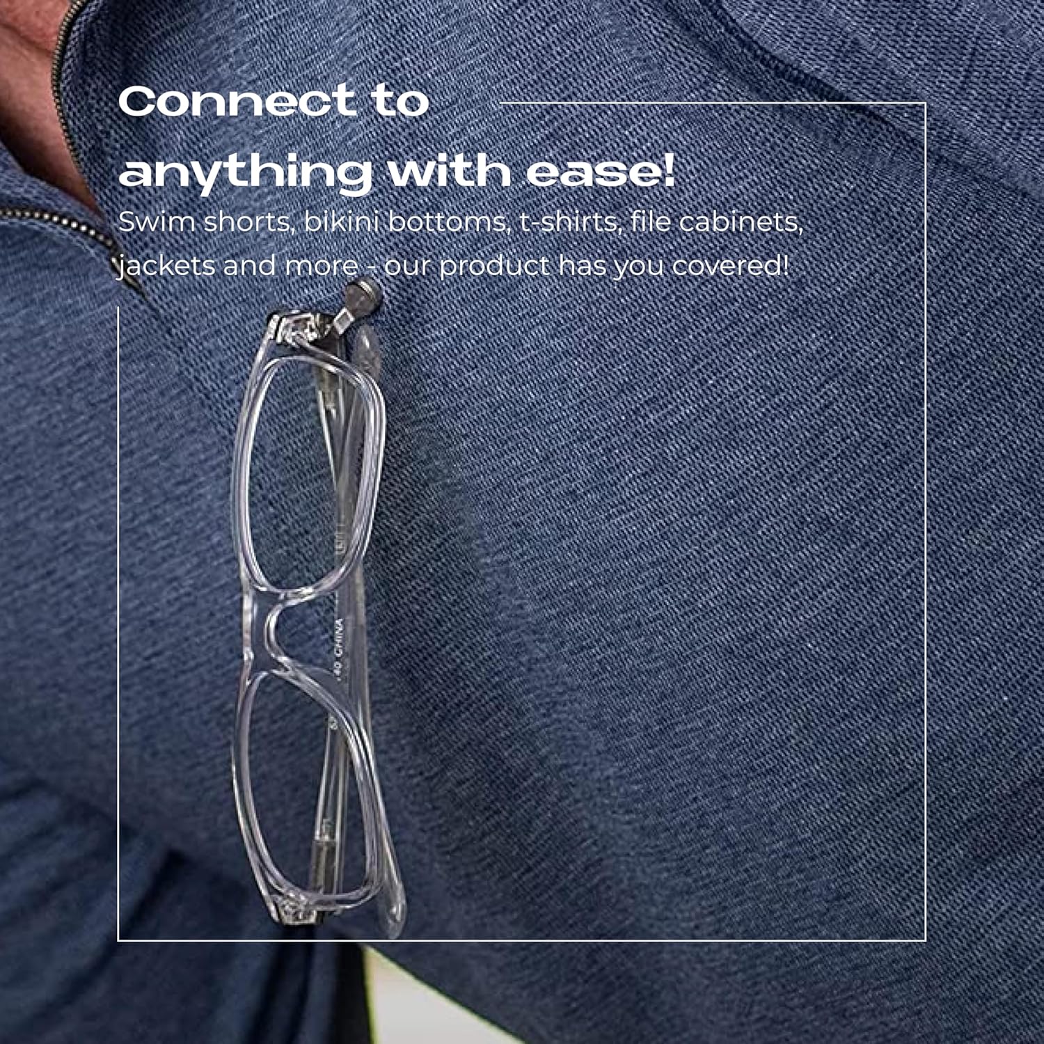 Tired of constantly dropping, scratching and losing your expensive glasses? With READEREST you easily attach your eyewear to any article of clothing and your glasses will be with you at all times. All you have to do is place the plastic back-plate on the inside of your clothing and the front clip to the outside and the magnets will automatically attach and self-center. No pins are used!