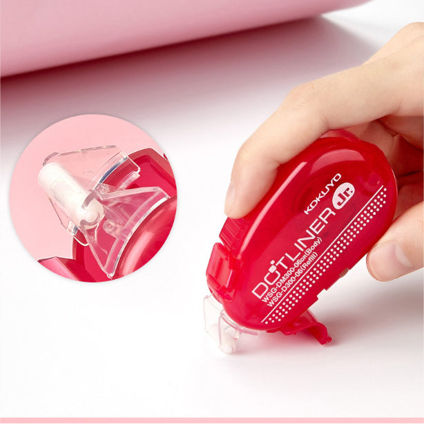 Ultra mini type dotliner that fits neatly into a pen case. The dotliner brings you hassle-free gluing experience, making adhesives clean, fast, and super simple. The glue is arranged in a dotted pattern that separates from the dispenser once applied on paper. The Dot Liner is a perfect tool for scrapbooking or any creative DIY projects. Refillable with compatible refills.