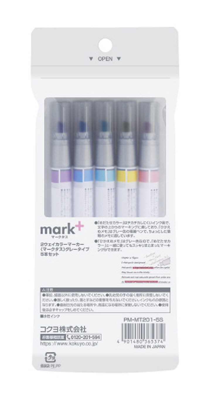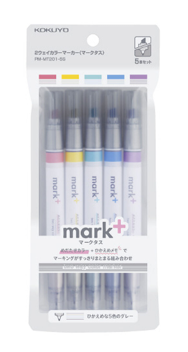 KOKUYO Mark+ 2 way Color Marker Set of 5 Grey Type