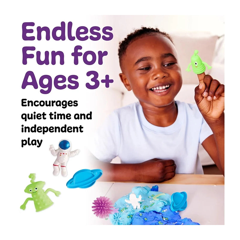 🎨 Sensory toys & themed accessories included — each pack comes with a set of moulds, figurines, stamps, confetti or tiny props depending on the theme (e.g. unicorns and magical items for Unicorn; farm animals and tools for Farm; astronauts/rockets/stars for Outer Space).