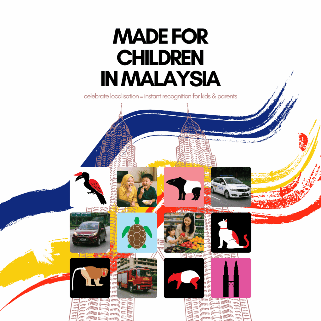 - Made for Children in Malaysia - celebrate localisation = instant recognition for kids & parents