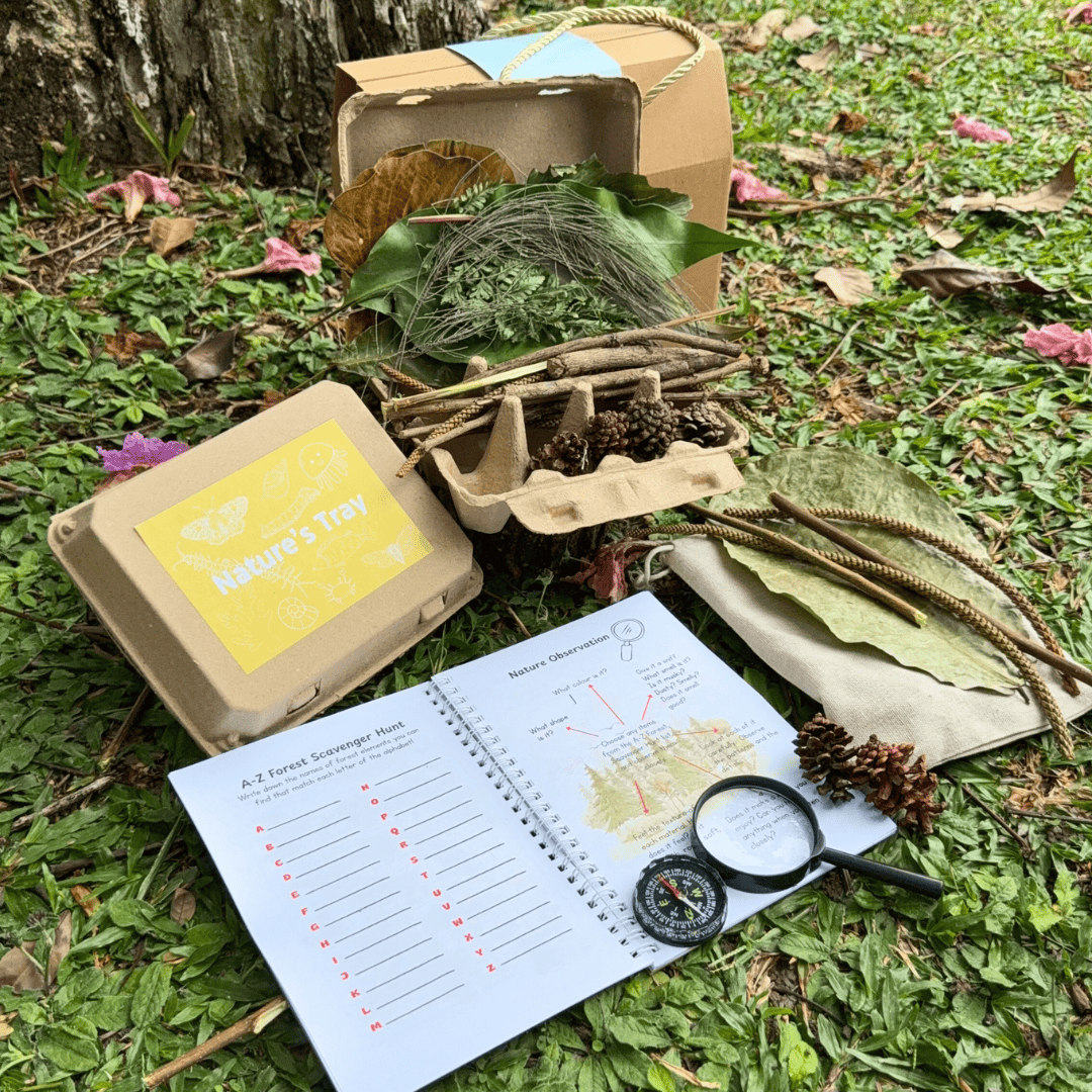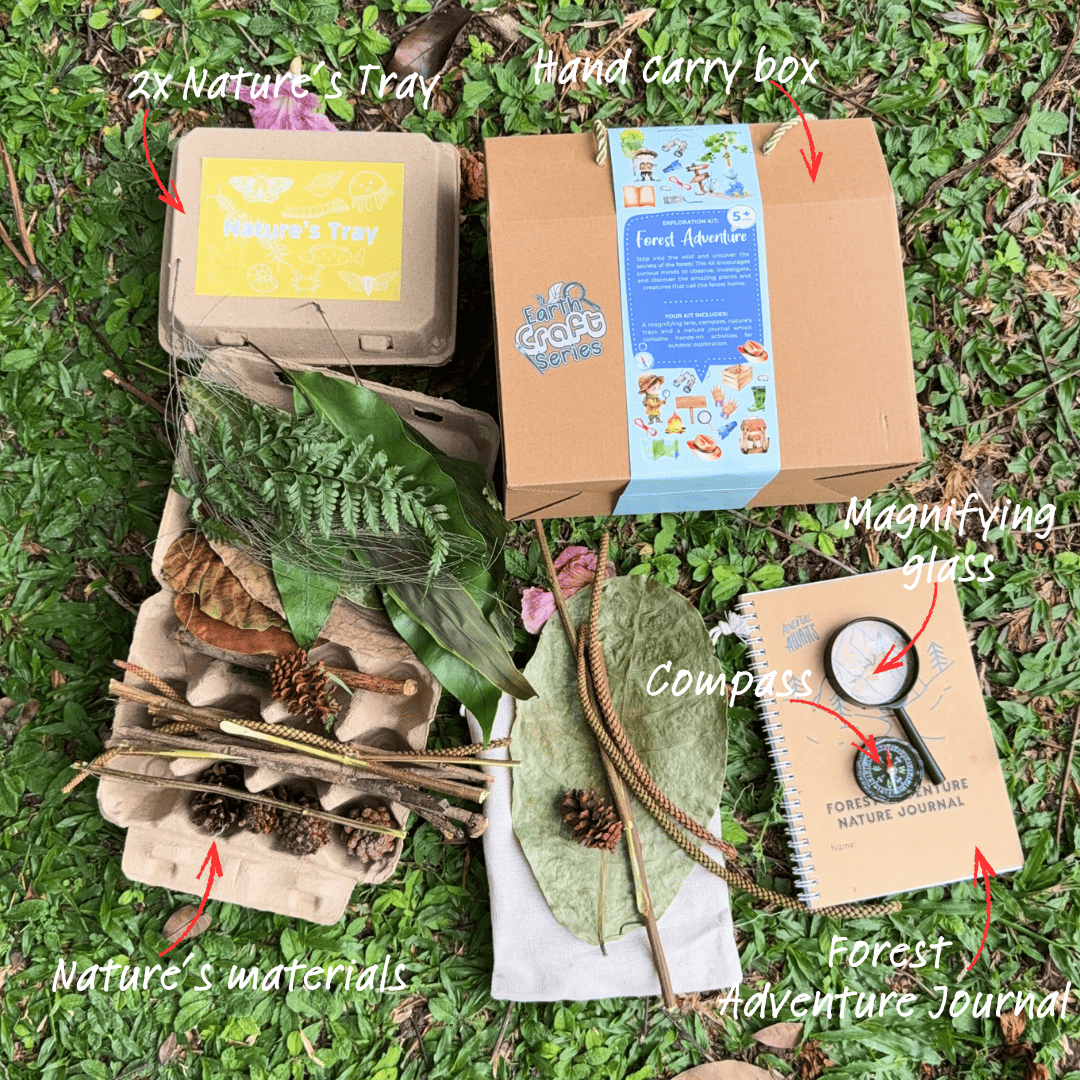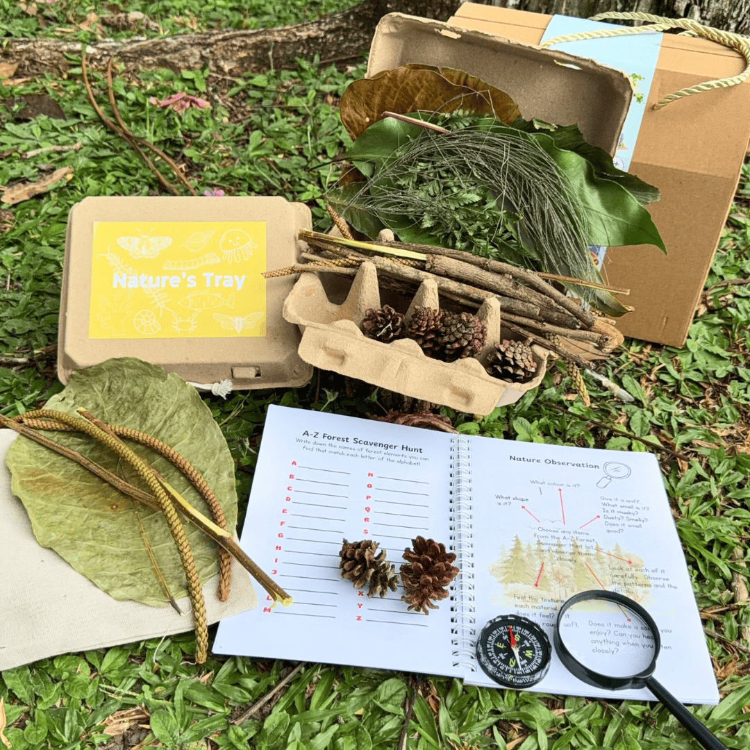 The Exploration Kit: Forest Adventure is designed for curious young explorers. This kit encourages children to observe, investigate, and connect with nature through hands-on exploration. With tools like a magnifying lens, compass, a guide on nature’s journaling and a nature’s tray, every walk becomes an exciting journey of discovery. Perfect for fostering curiosity, observation skills, and a love for the natural world.