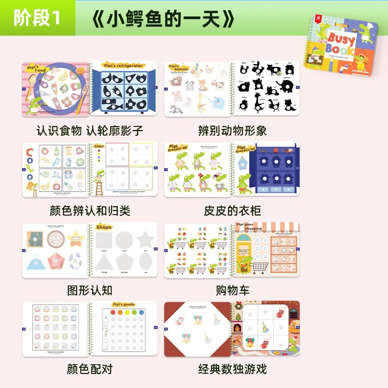规则介绍:根据页面提示和父母引导,儿童独自完成书内的互动游戏。忙碌书按等级划分,适用不同年龄段儿童玩耍和学习。