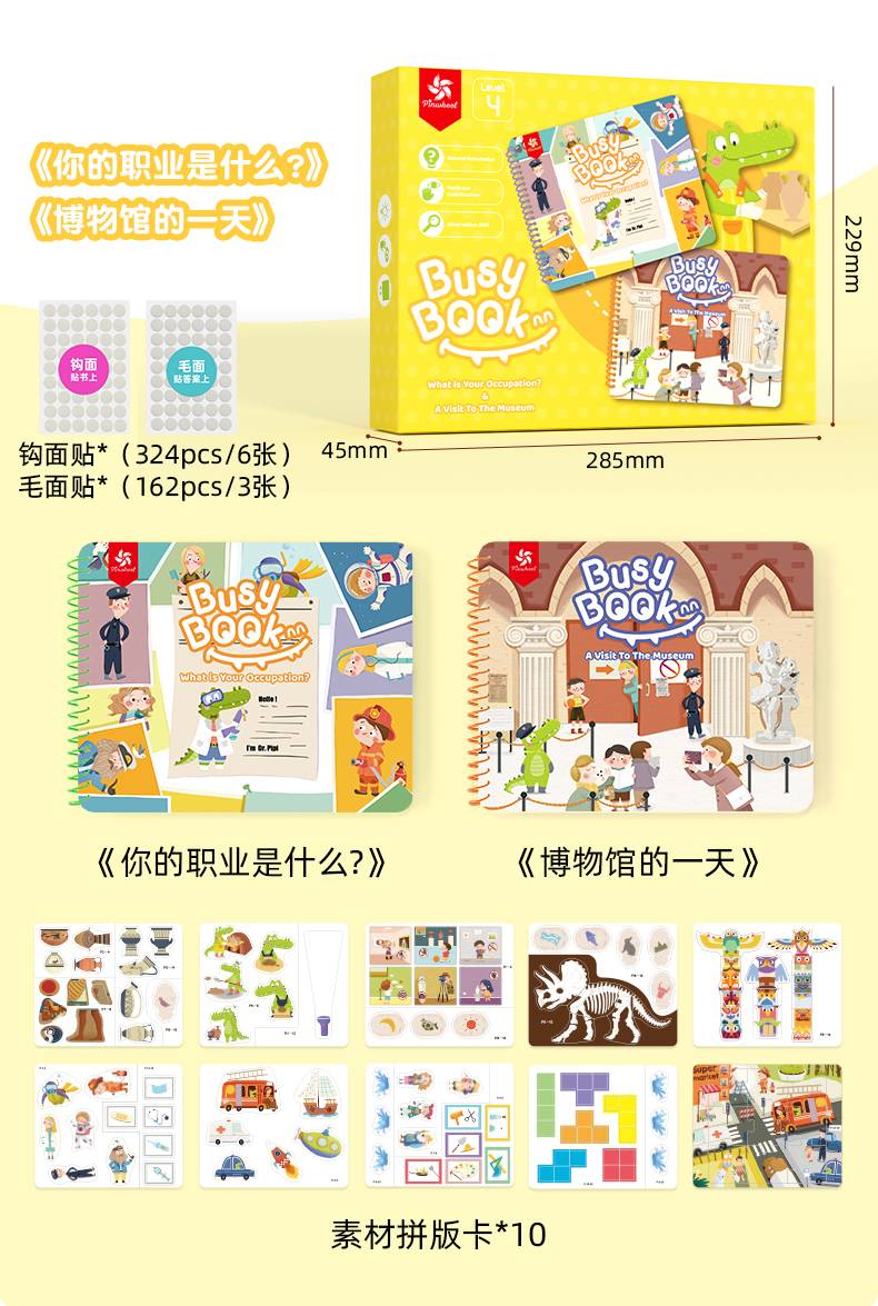 规则介绍:根据页面提示和父母引导,儿童独自完成书内的互动游戏。忙碌书按等级划分,适用不同年龄段儿童玩耍和学习。