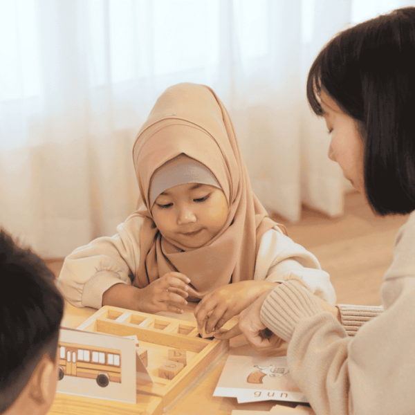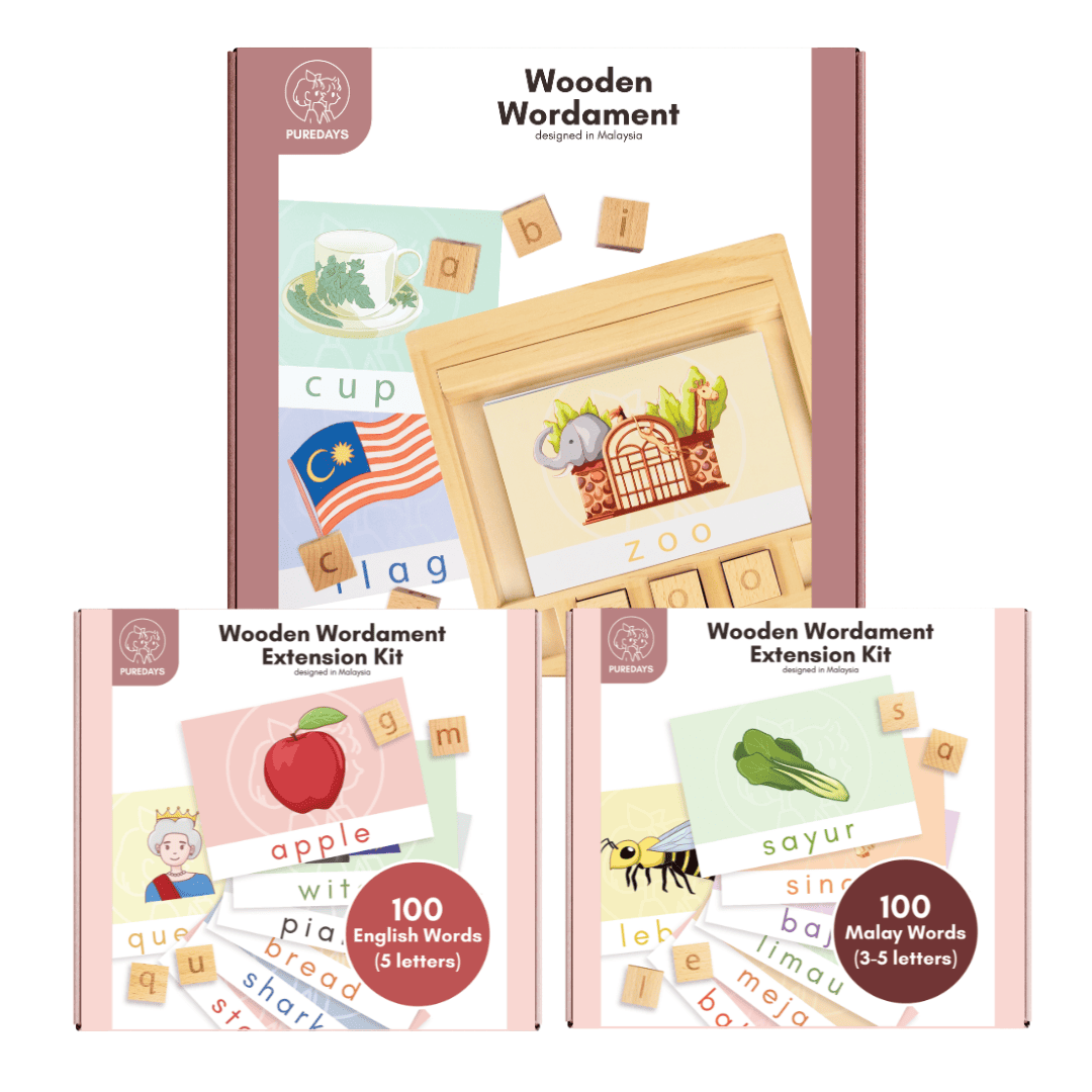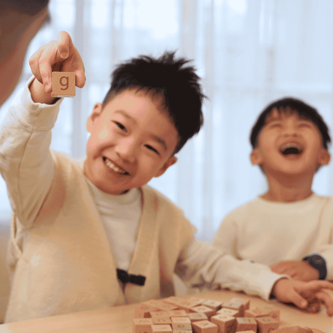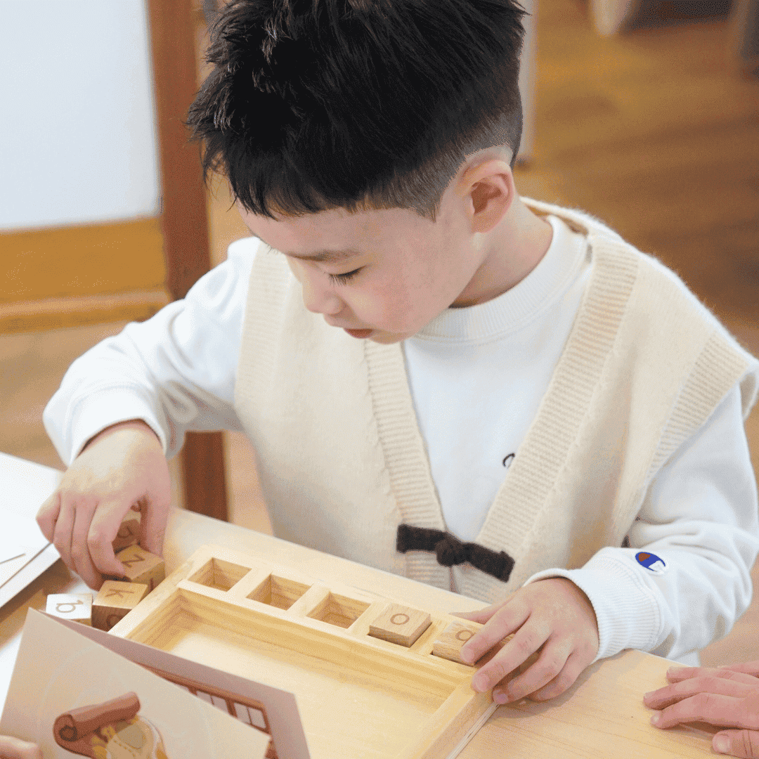 Multiple sets of wooden letter tiles (including common blends like “sh,” “ch”)