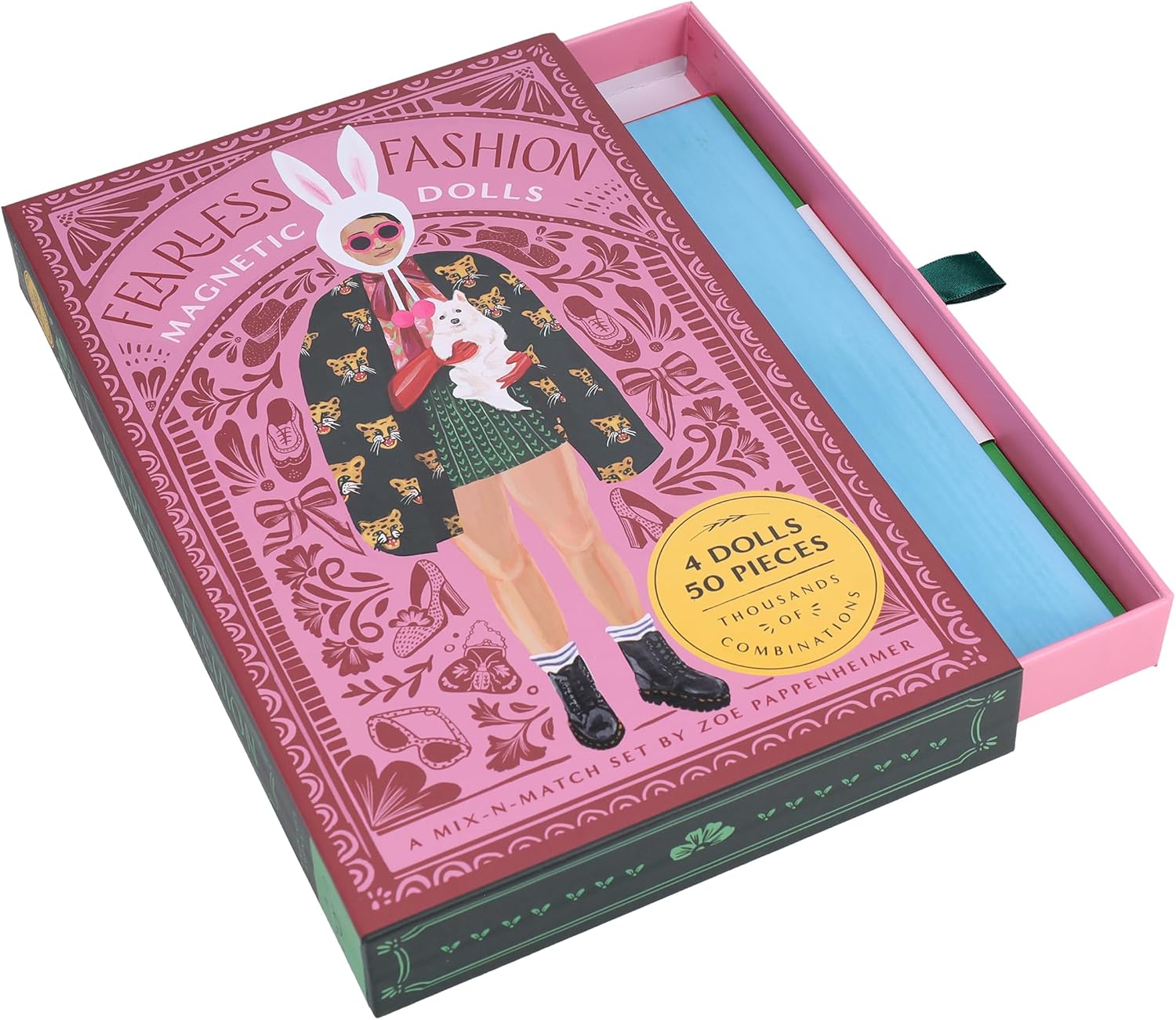 MAGNETIC DRESS-UP DOLLS: Celebrate the playful, transformative power of fashion with this gorgeous set of magnetic paper dolls. Featuring four different doll figures and forty-eight interchangeable outfit pieces.