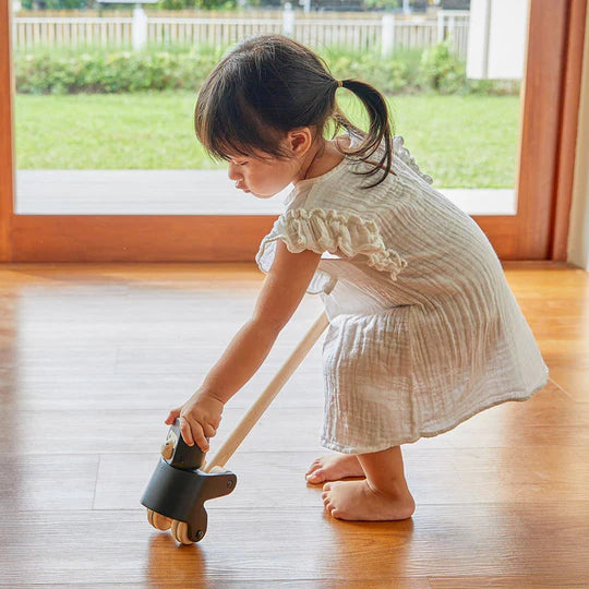 Welcome the adorable PlanToys Climbing Gorilla into a child’s play routine. The Climbing Gorilla helps toddlers develop fine and gross motor skills while encouraging them to take their first steps. Children can find joy in watching the gorilla make climbing movements as it’s pushed along.