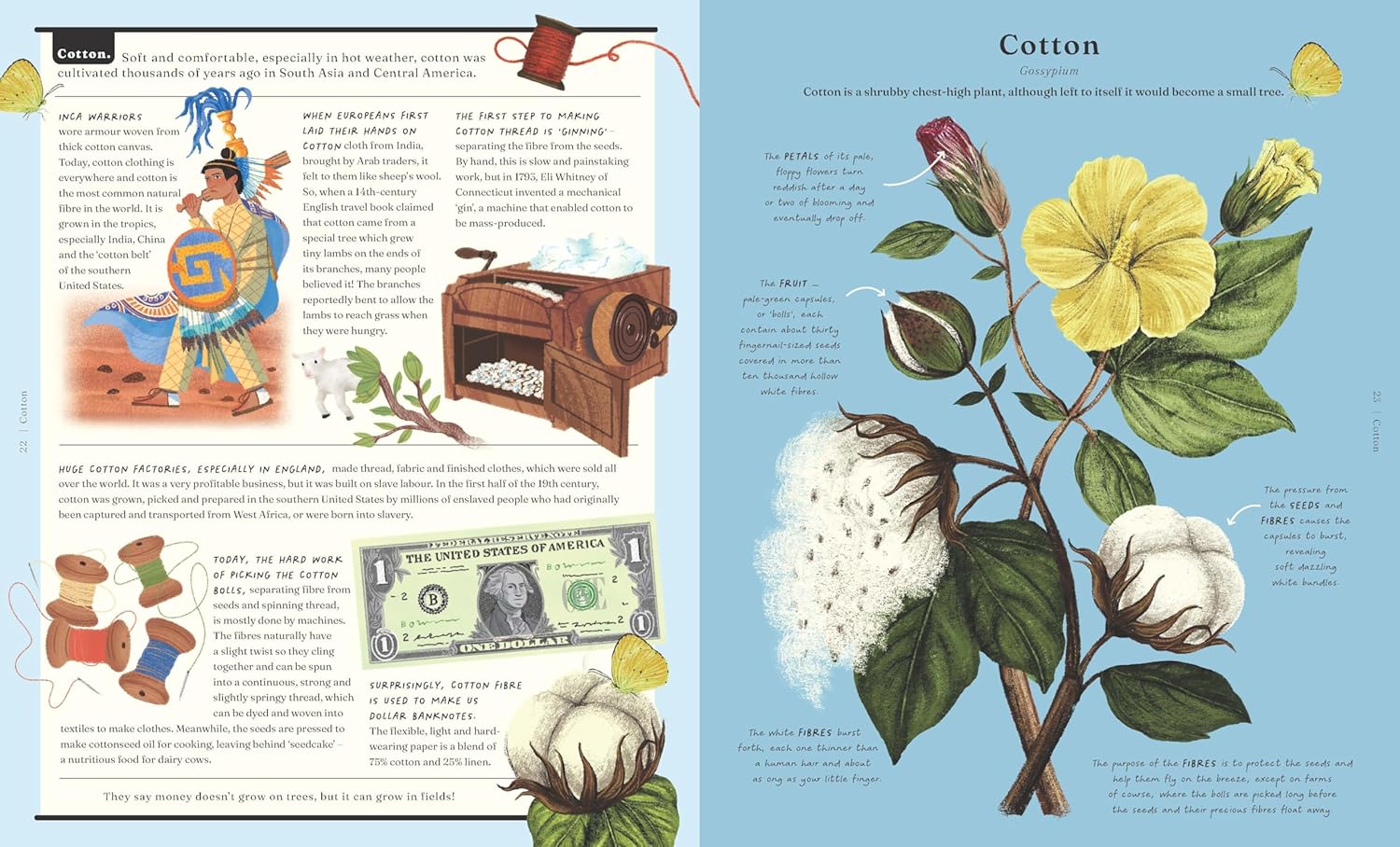 - Cotton is spun into shirts... and banknotes