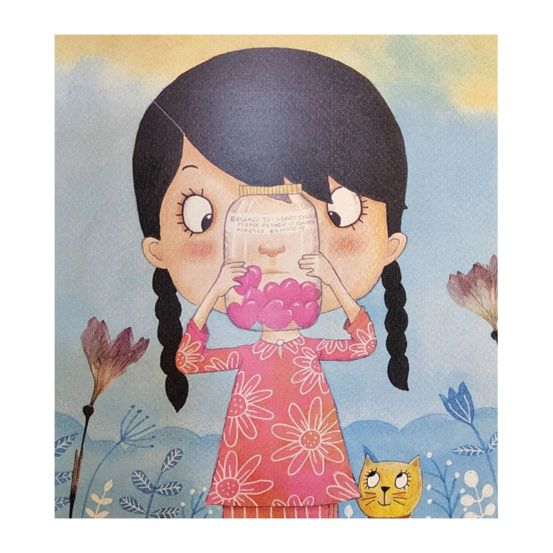 Hearts is an allegorical tale of what it means to be human. In this story, Amy finds some hearts in a bottle. One of the hearts is broken and she mends it. She returns all the other hearts to their owners. However, she can’t find the owner of the broken heart. When I thought of this story, I remembered all those people who have big hearts and who have been kind to me and others. And I thought perhaps some people might have had their hearts broken or hurt in the past. To mend a broken heart may be painful and the scars will still show but I believe care, love and friendship go a long way towards healing a broken heart. May this little book remind us that there is always room in our hearts for care, love and friendship.