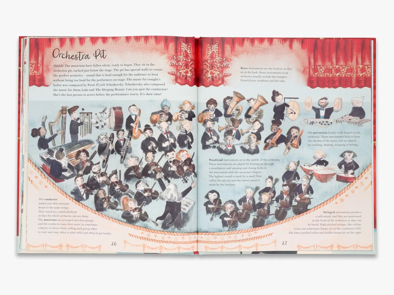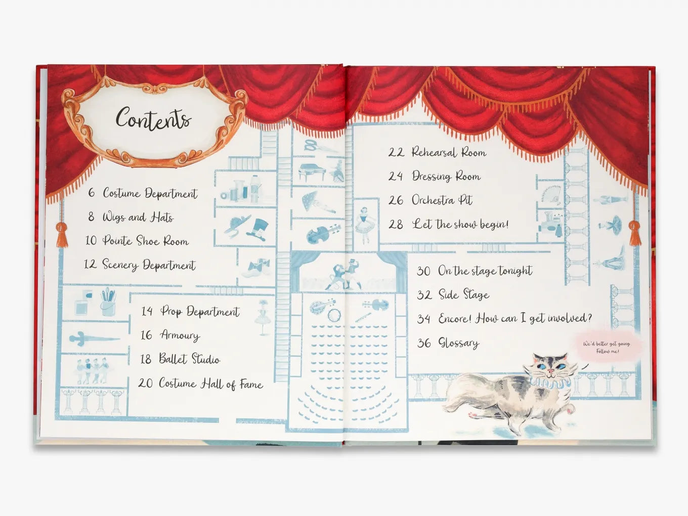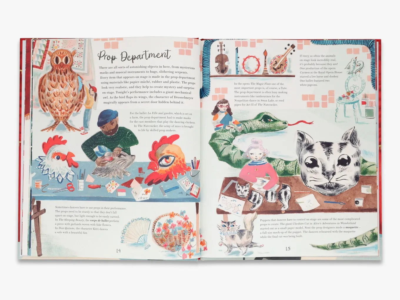 It’s opening night of The Nutcracker, and the performers at the Royal Opera House in London are busy getting ready to step out onto the stage. Meanwhile, Figaro – the opera house’s resident cat – is poised to take readers on a behind-the-scenes tour to meet the many people working to make tonight’s performance a resounding success.