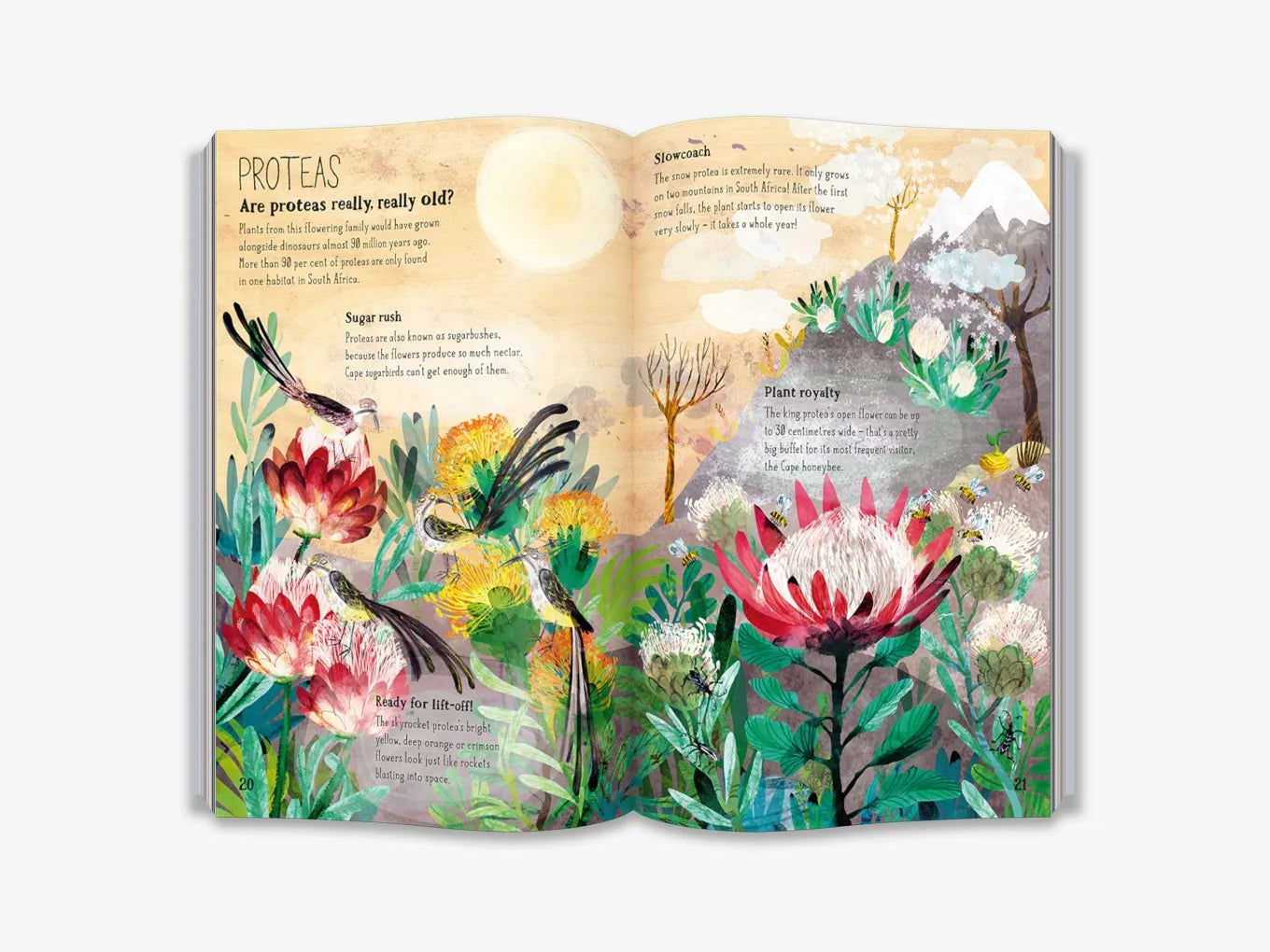 The newest addition to Yuval Zommer’s bestselling series answers these questions and more as it introduces young children to all kinds of colourful, carnivorous, weird and wonderful flowering plants from around the world. It opens with introductory spreads on how to be a botanist; how to recognise different types of flowers; the life-cycle of a plant; flower anatomy; and the seven types of animal pollinators including bats, birds and beetles. Subsequent spreads, illustrated within various habitats, are dedicated to specific varieties of plants, including the carnivorous venus flytrap, the giant water lily and the weird and wonderful corpse flower. Readers will enjoy learning about different edible flowers and why flowers are fragrant or colourful, not to mention grisly details about carnivorous and poisonous flowers.