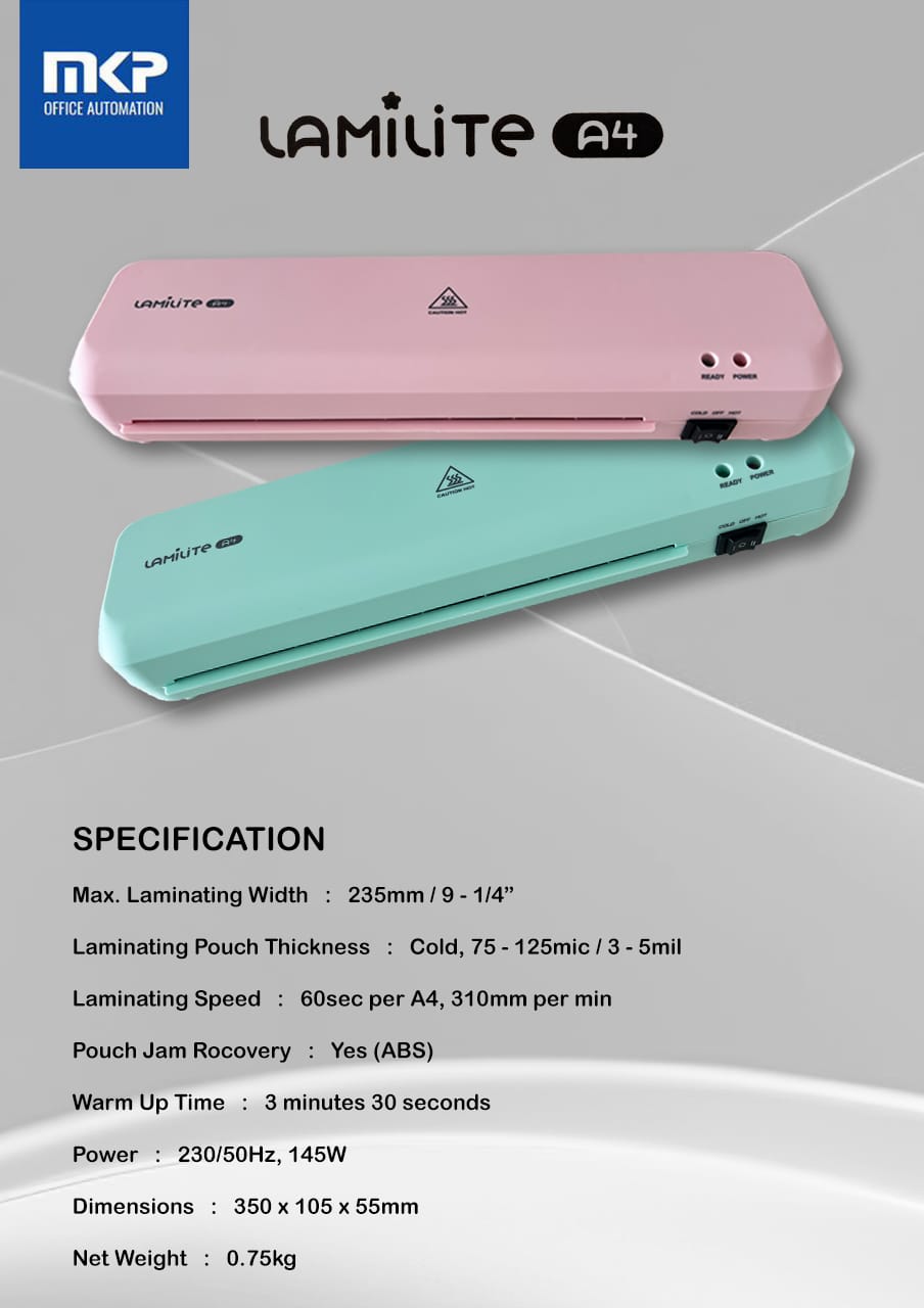 MKP Laminating Machine A4 Ta-Peer 101 White (Warranty:3 Months)