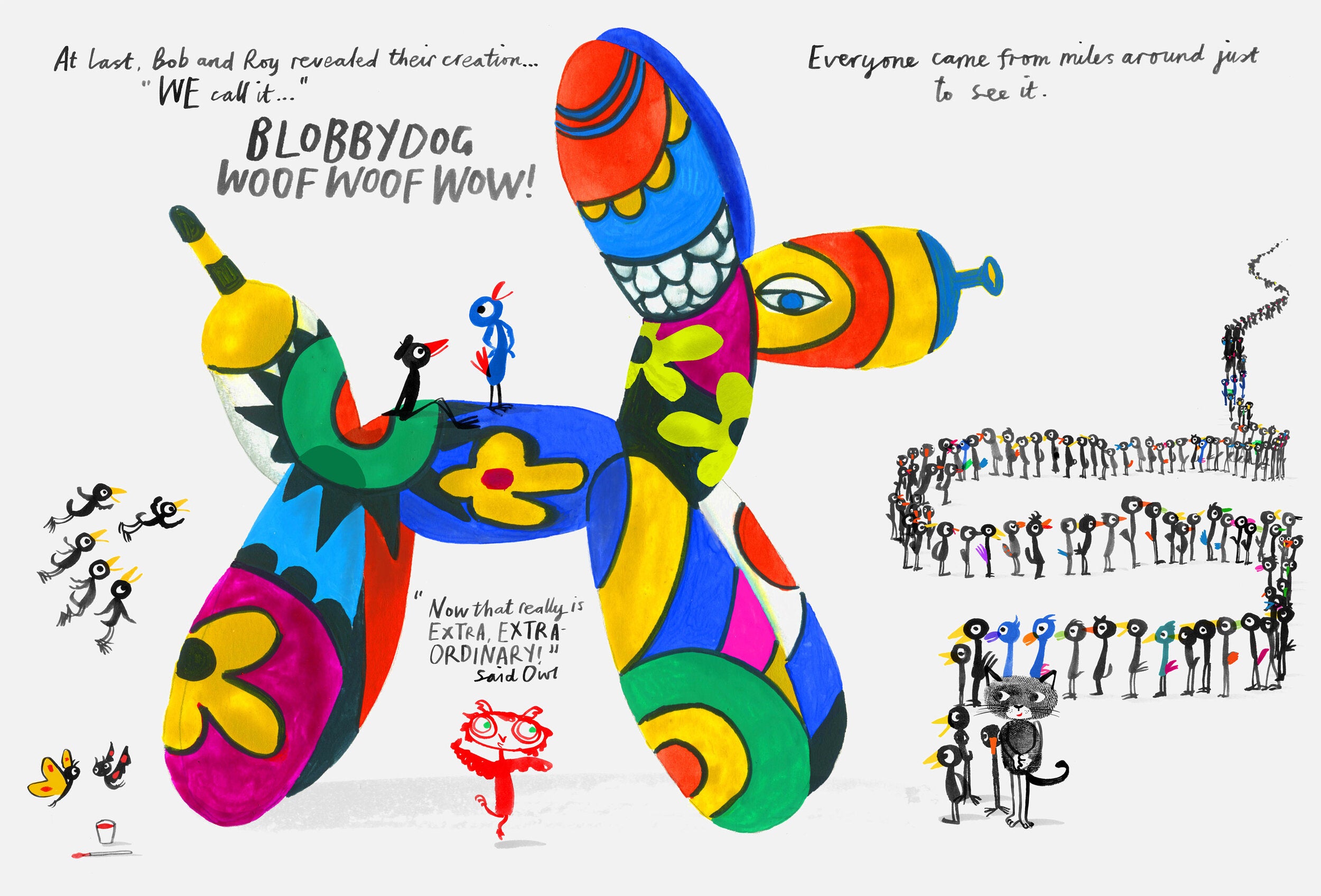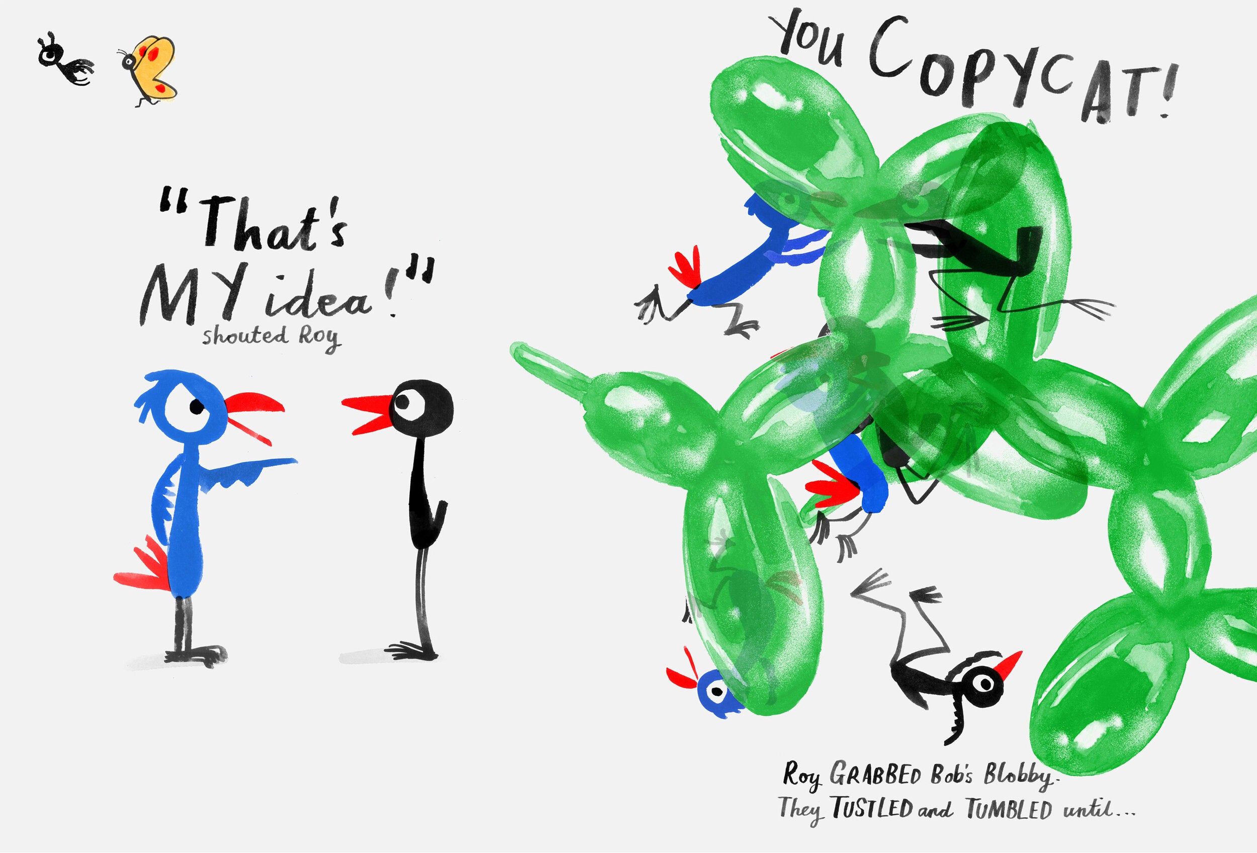 Bob Goes Pop is a charming and funny follow-up to Bob the Artist and Bob’s Blue Period, all about art and teamwork.There’s a new artist in town, making a new type of art and knocking Bob’s beak out of joint. The subsequent competition to see who is the best artist escalates as each bird attempts to outdo the other. Will it all end in tears, or will the two realise that they are better working together rather than against each other?