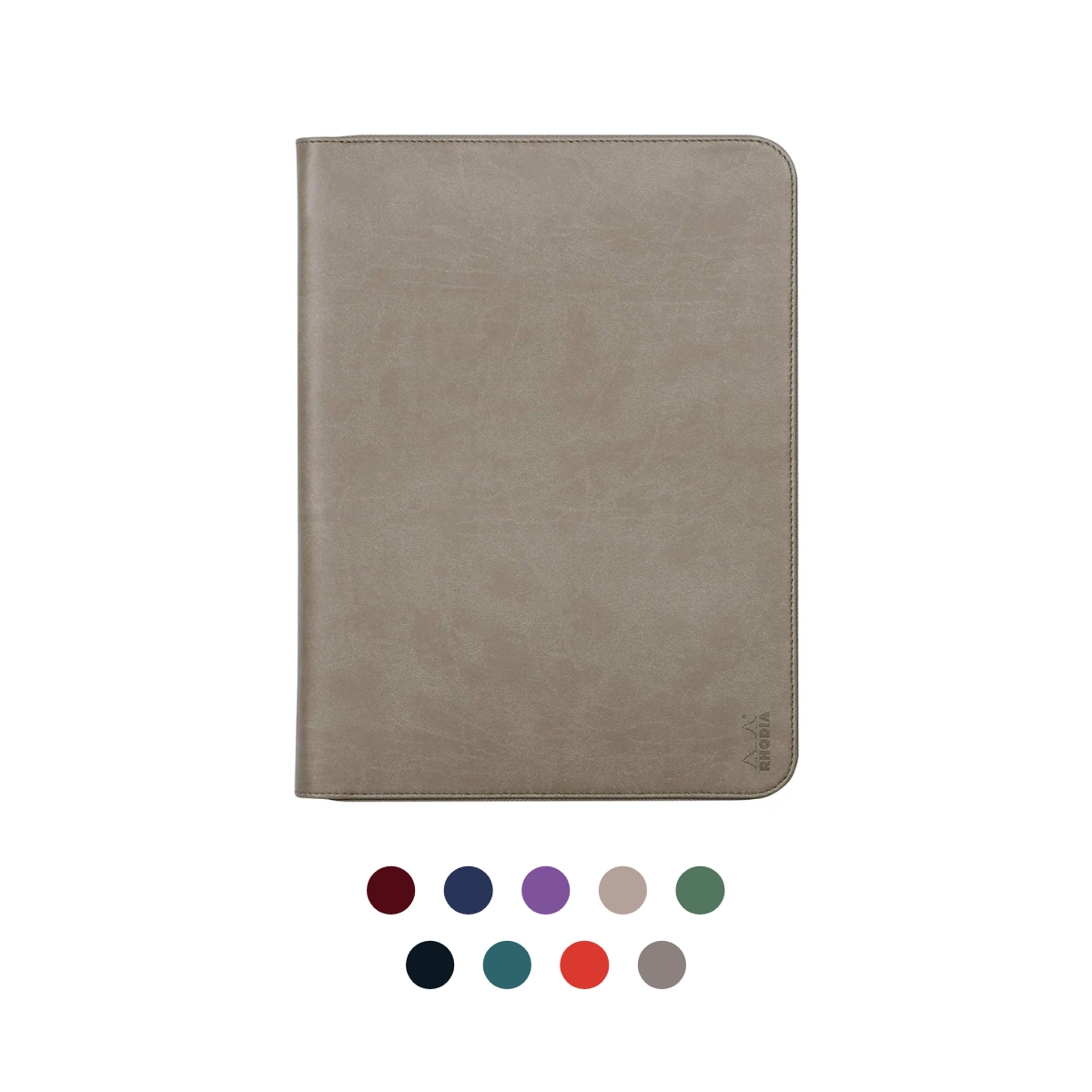 - TIMELESS DESIGN and PREMIUM FINISHES: high-end Italian imitation leather with a velvety feel with embossed Rhodia logo. Genuine seams, discreet matching zipper, orange poplin lining. Suitable for vegans