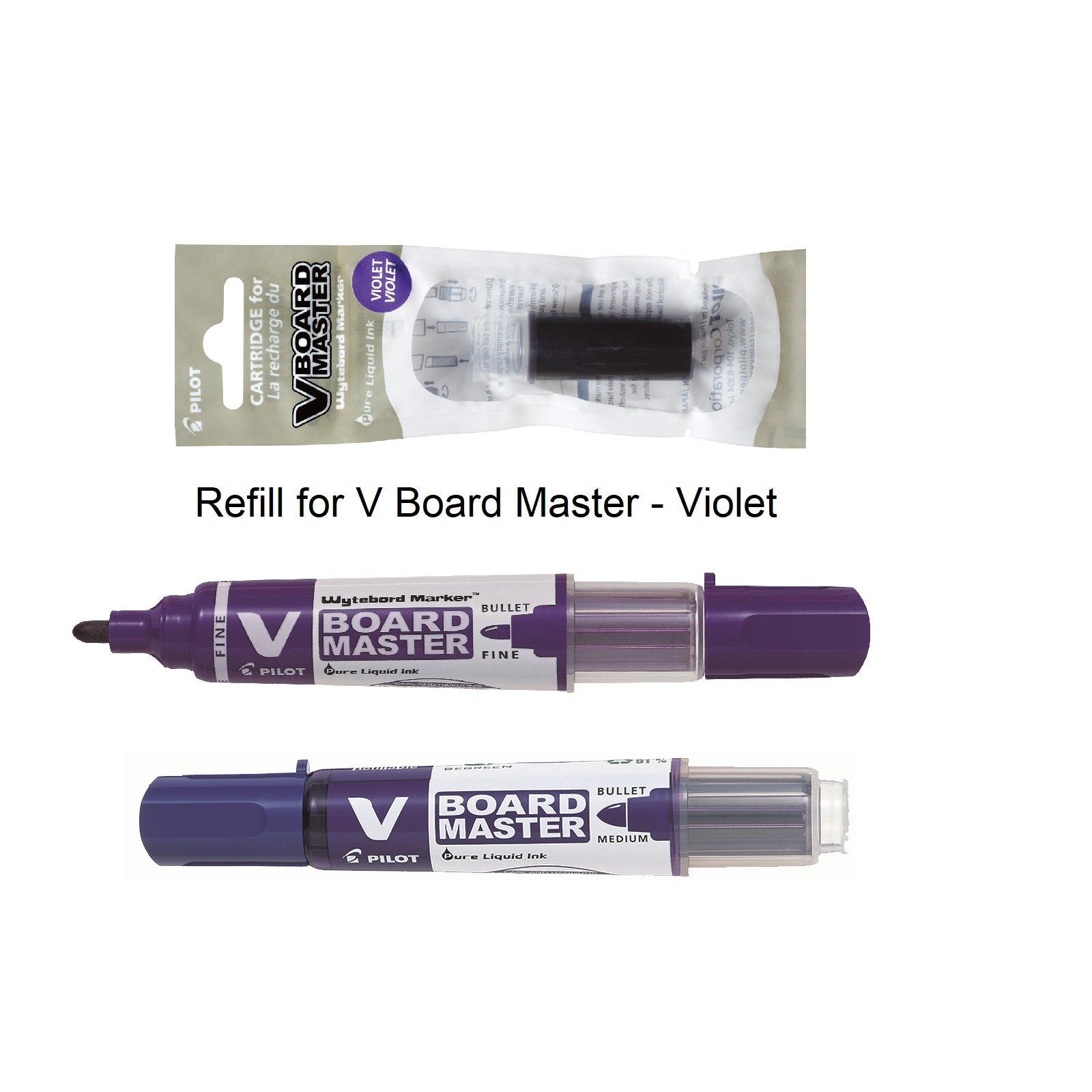This ink cartridge is to be used with Pilot’s V board master whiteboard marker.