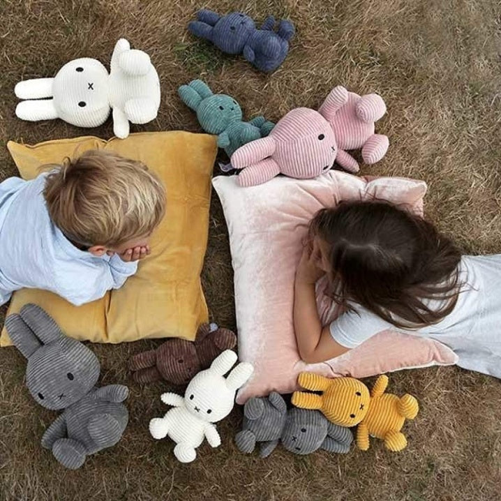 Miffy was first drawn by Dick Bruna in 1955. Miffy Corduroy not only as a cuddly toy but also fun as decoration. Made from the best materials. Available in div. colours and sizes. Dutch author, artist and illustrator Dick Bruna's iconic little bunny character, Miffy, needs very little introduction. First drawn in 1955, Miffy has appeared in over 30 books and appeals to children all over the globe. Uncomplicated and positive in attitude, Miffy's adventurous spirit is infectious – for children and adults alike. Her original name is derived from a Dutch word which means 'little bunny' but, as its very difficult to pronounce, she became 'Miffy' to her international audience. This adorable little rabbit has been incarnated into many cute and covetable forms, from corduroy or velvet soft toys, to her motif appearing on china, stationery and textiles. She's a timeless childhood icon, whose appeal is just as strong, no matter how old you get.