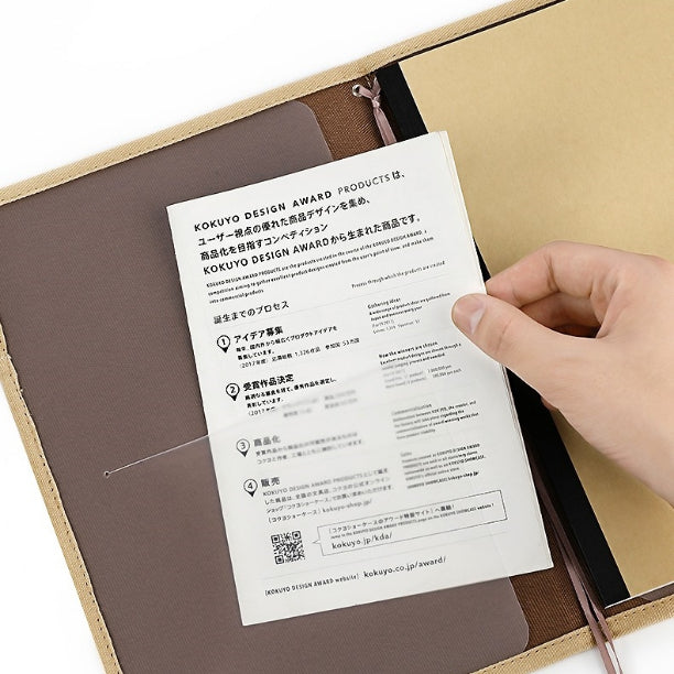 This subtle yet elegant notebook cover is the perfect companion for business professionals. It is made of sturdy canvas material and features outer and inner pockets for storing paper items. Cover includes a elastic closure and two ribbon bookmarks. It can be refilled with Kokuyo Campus notebooks and is available in a variety of colors.