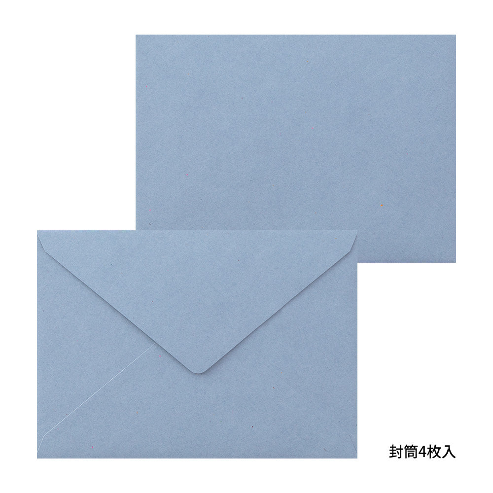 Elegant and high-quality letterpress printing letter sets let you feel the delicate touch and beautiful shading created by the printing pressure of letterpress. The letter set uses soft paper suitable for letterpress printing, and the lines are also letterpress printed. You and your receipient will enjoy the different textures of unevenness and blurring unique to letterpress printing. The envelopes are made with a special colour that enhances the delicate printing of the stationery. Each set comes with 8 sheets of letter paper and 4 envelopes. Suitable for use with fountain pens, water-based pens, and brush pens.