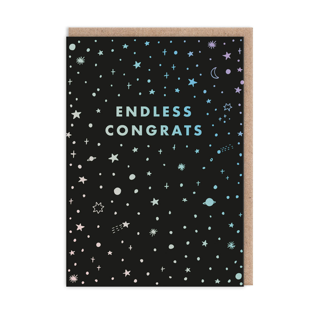 Celebrate special moments with this stylish, one-of-a-kind congratulation card from Hello!Lucky. Its black background and holographic foil stars make it stand out, while the text “Endless Congrats” is sure to bring a smile.