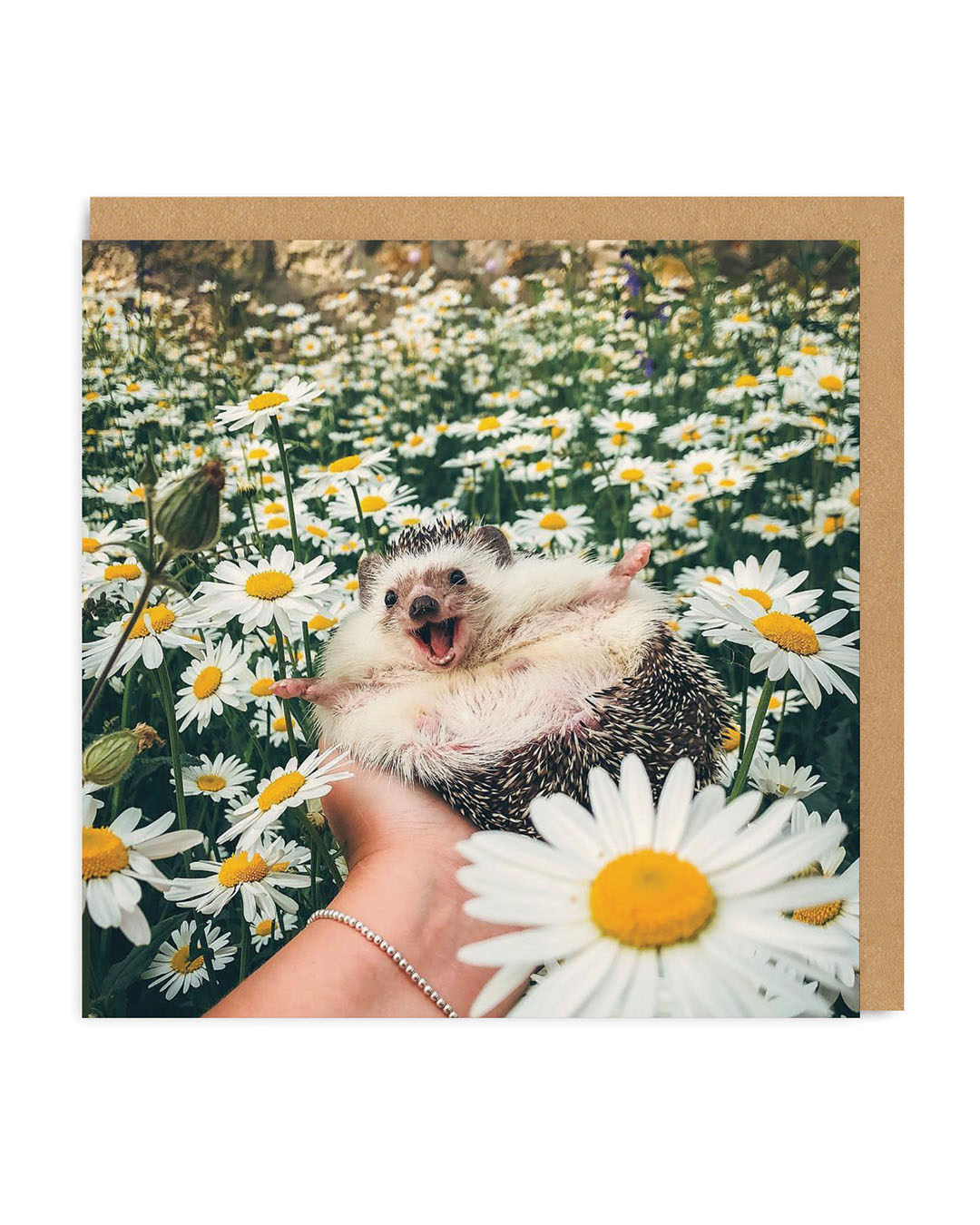 Let pure joy bloom with the Hedgehog Daisy Field Greeting Card. A happy hedgehog amid daisies brings a smile in every sustainably crafted note—designed by Say Cheese.