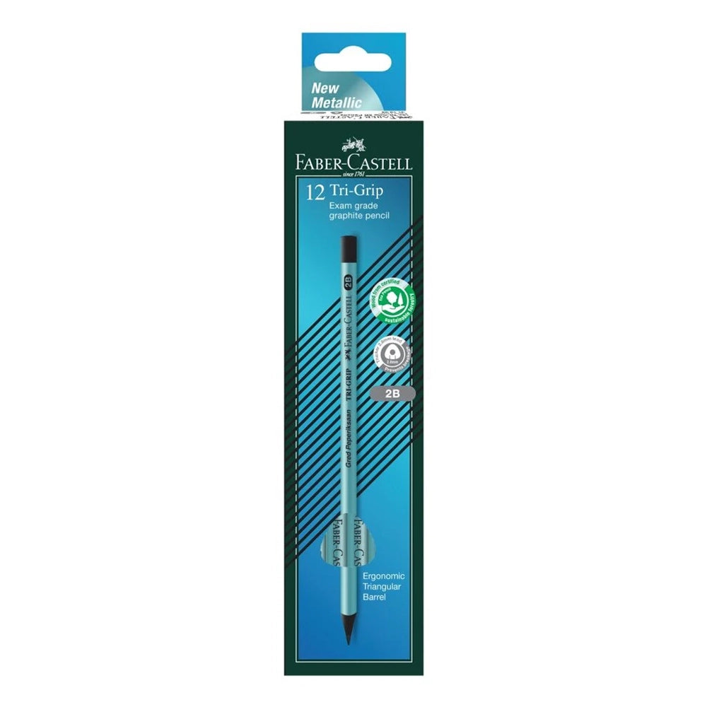 FABER-CASTELL Tri-Grip 2B 311813 Met Blue Blackwood Pencil Box of 12