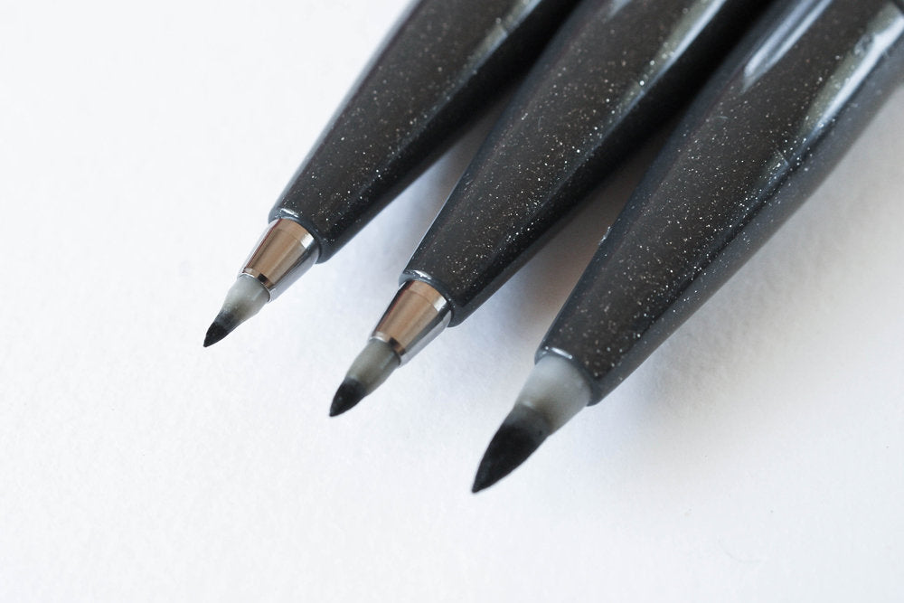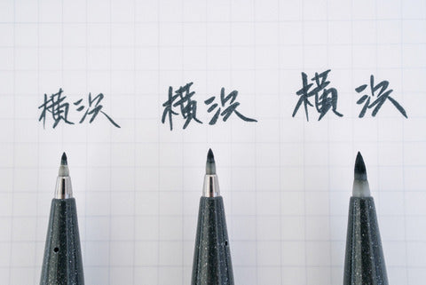 Pentel's brush pen comes in three sizes, Extra Fine, Fine, and Medium and are suitable not only for lettering but also for illustration because of its ease of altering the strength of your lines. The tip of the pen is strong and short, so even beginners can handle it easily, allowing anyone to easily try brush lettering.