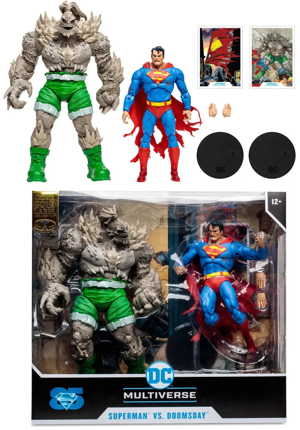 Relive one of the most epic showdowns in DC history with the DC Multiverse Gold Label Superman vs Doomsday 2-Pack featuring a battle-scarred Superman and a massive Doomsday Megafig. Crafted by McFarlane Toys, this set is designed for both play and display.