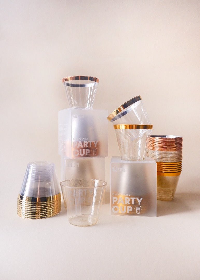MKP Home Disposable Party Cup Gold with Sparkling 7s