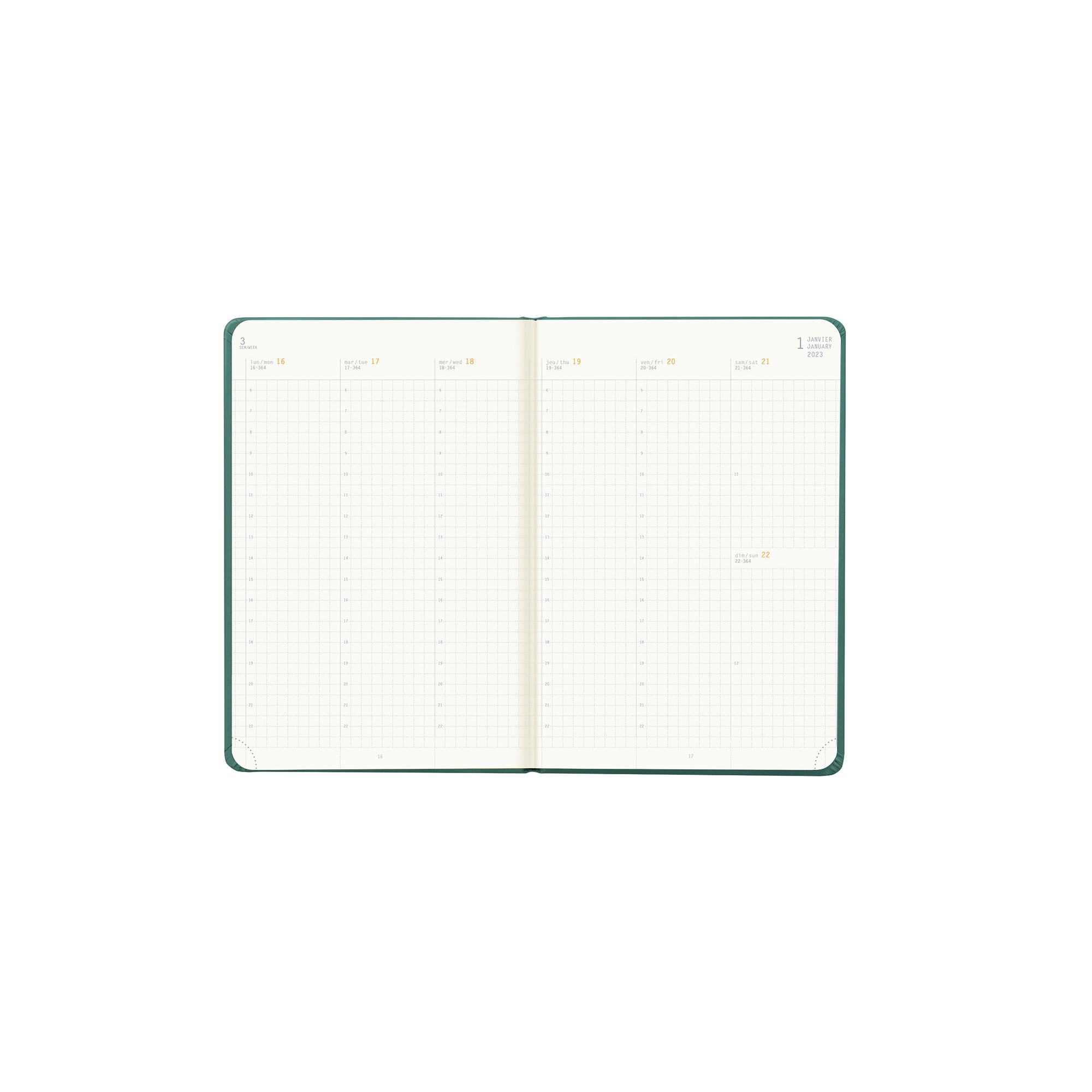 Rhodia's weekly webplanner combines contemporary design and great functionality. Notebook and planner all in one. The layout allows you to see your week at a single glance: lined weekly schedule on the left, and the iconic Rhodia graph grid on the right for notes, sketches and more.